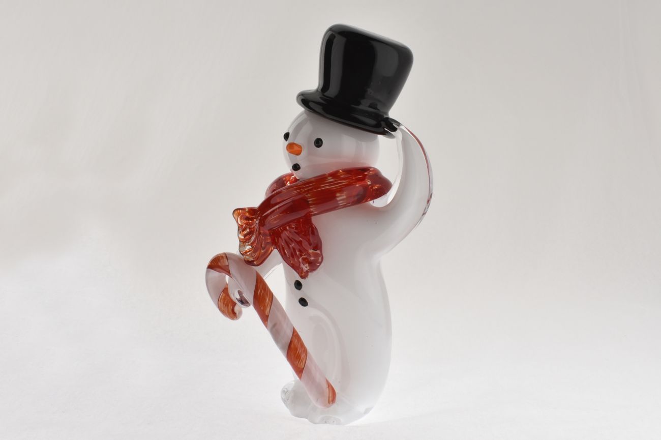 Studio art glass blown snowman. Great for your Christmas display. Available in a range of styles.