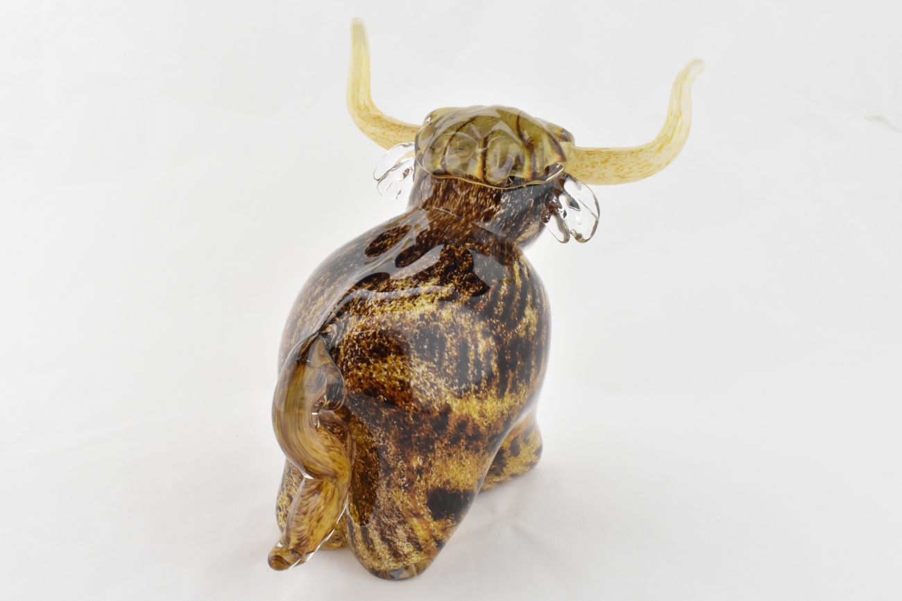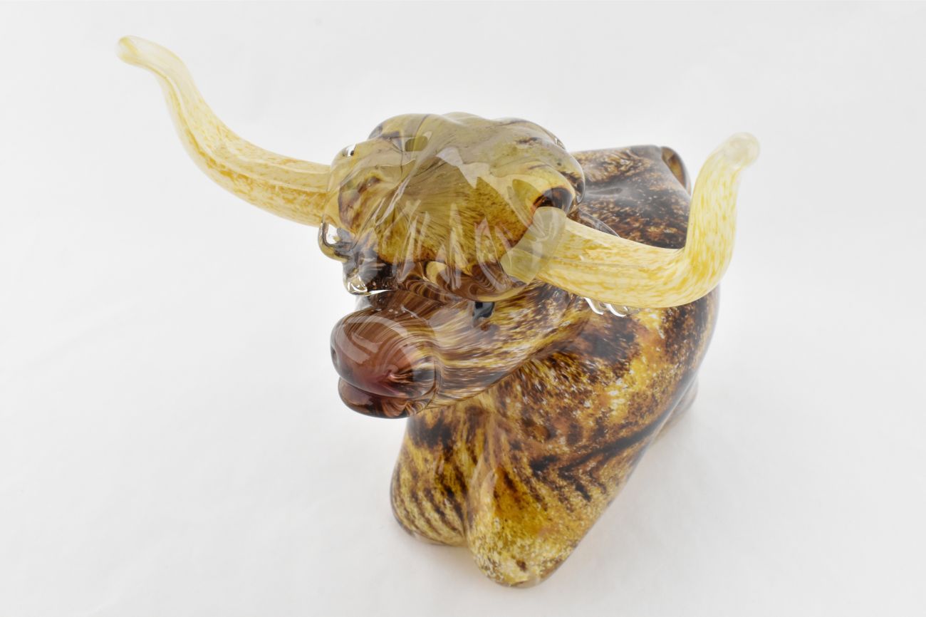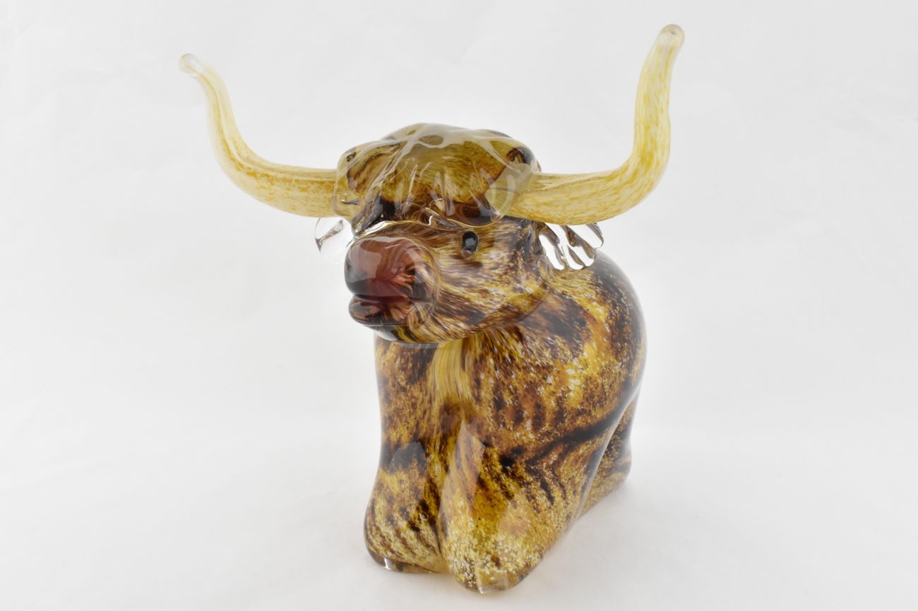 This highland cow is hand blown and sculpted.