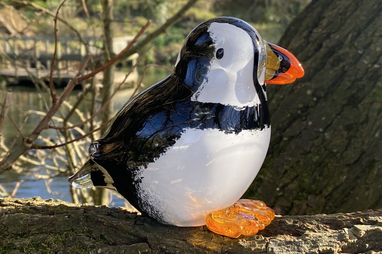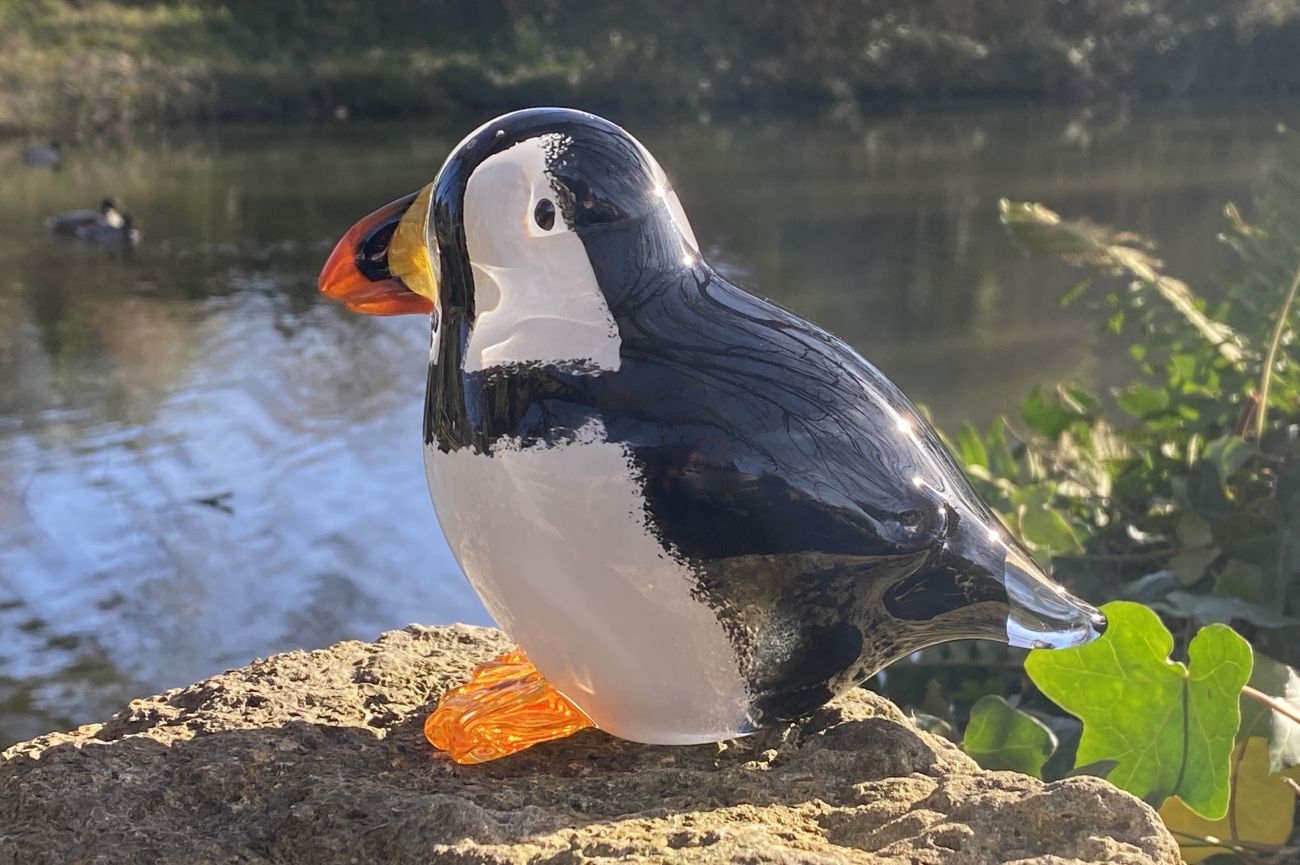Hand Blown and sculpted from molten glass by Paul. This Puffin is a colourful delight.