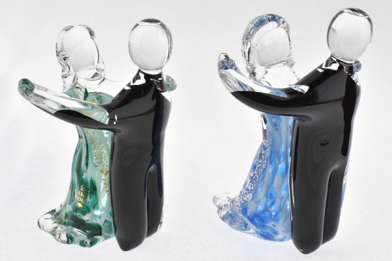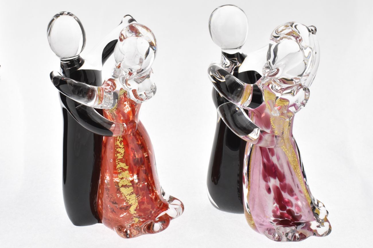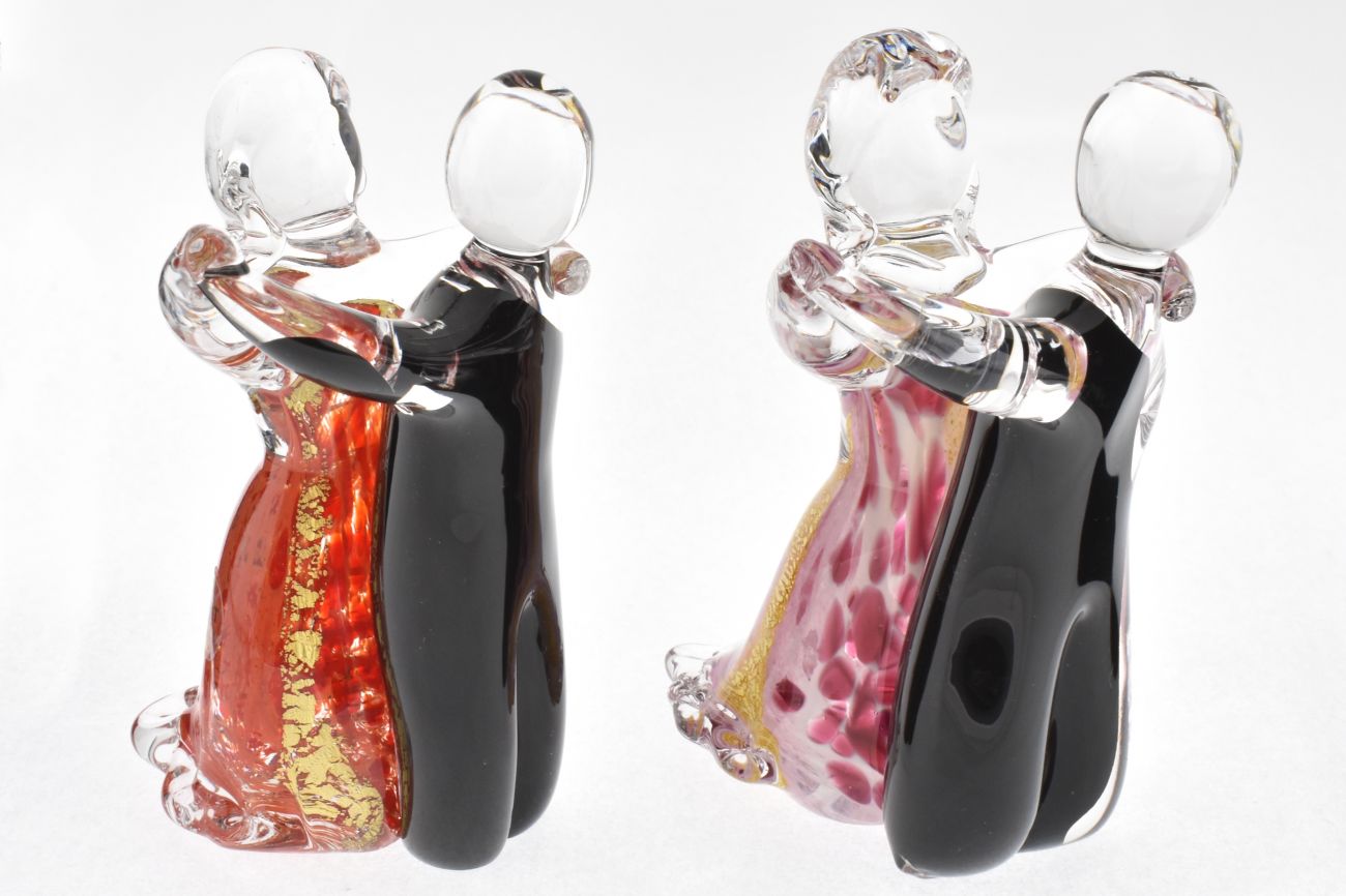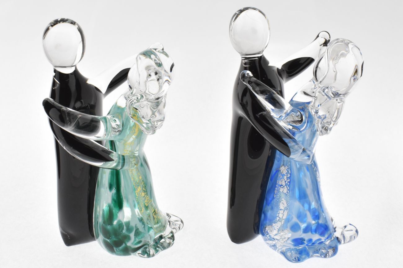 Hot sculpted from molten glass and available with the lady in a choice of colours.