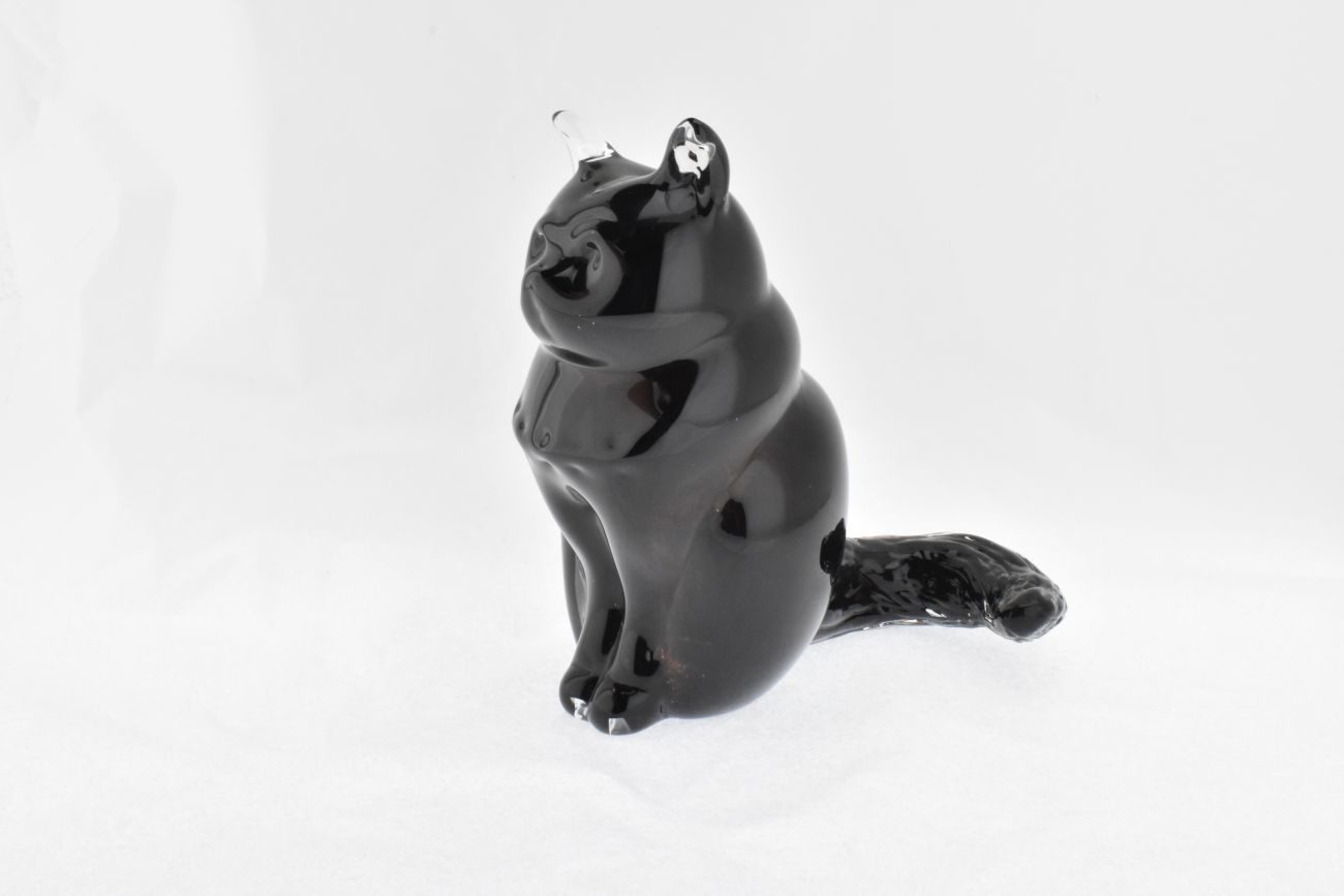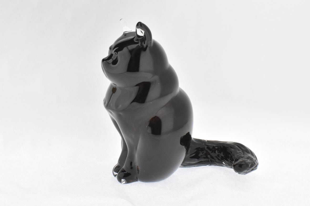 Studio art glass blown and sculpted black cat.