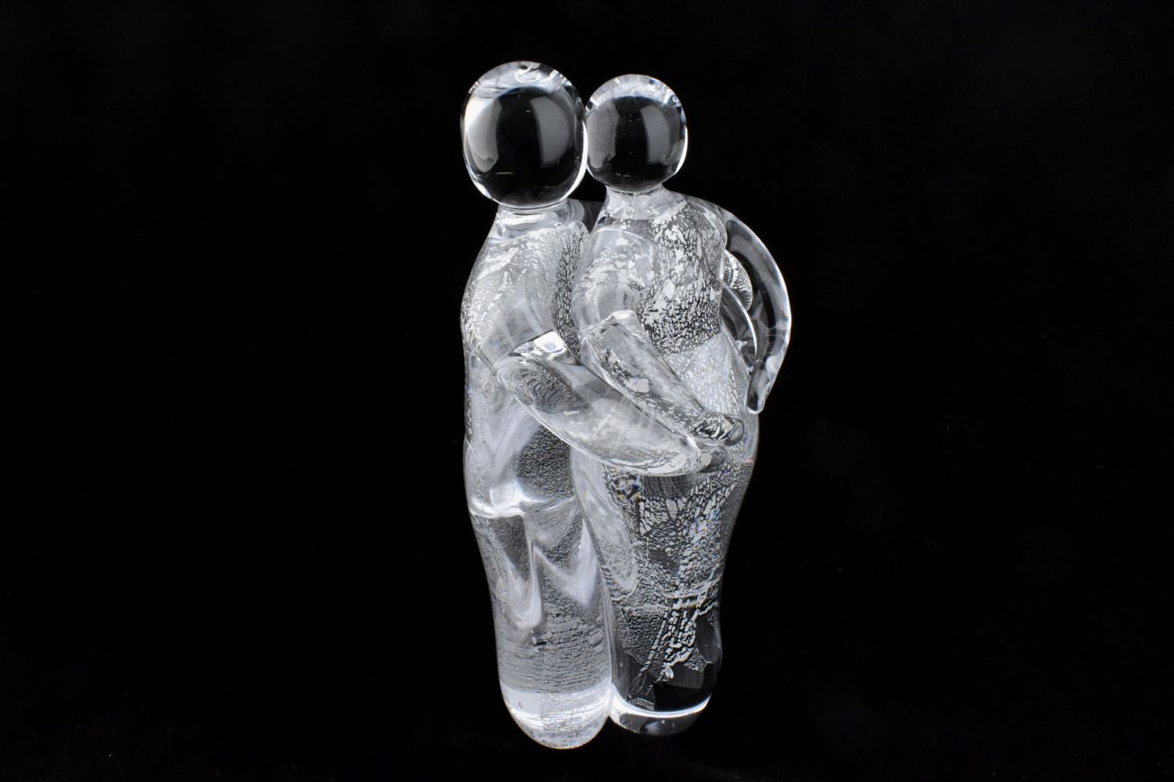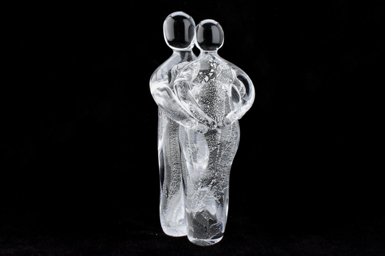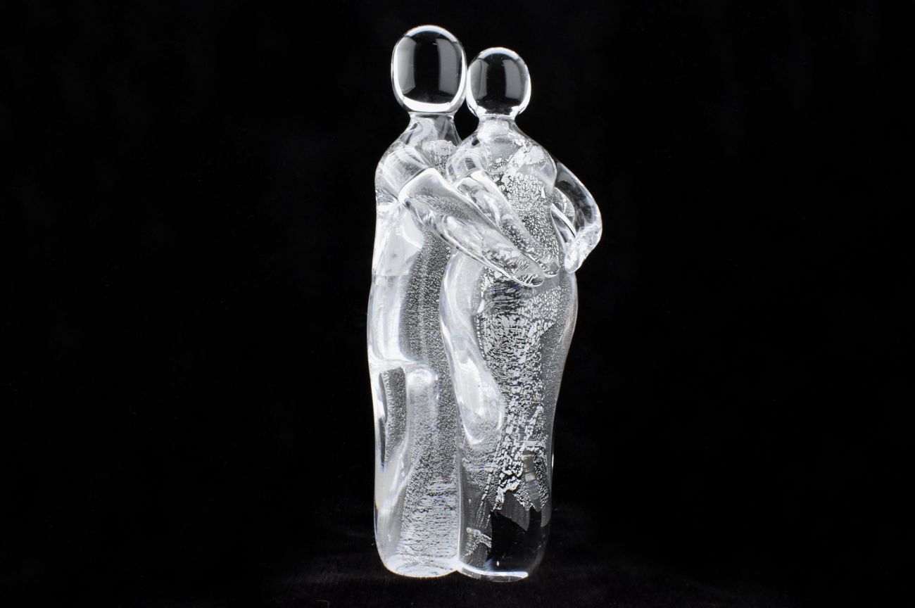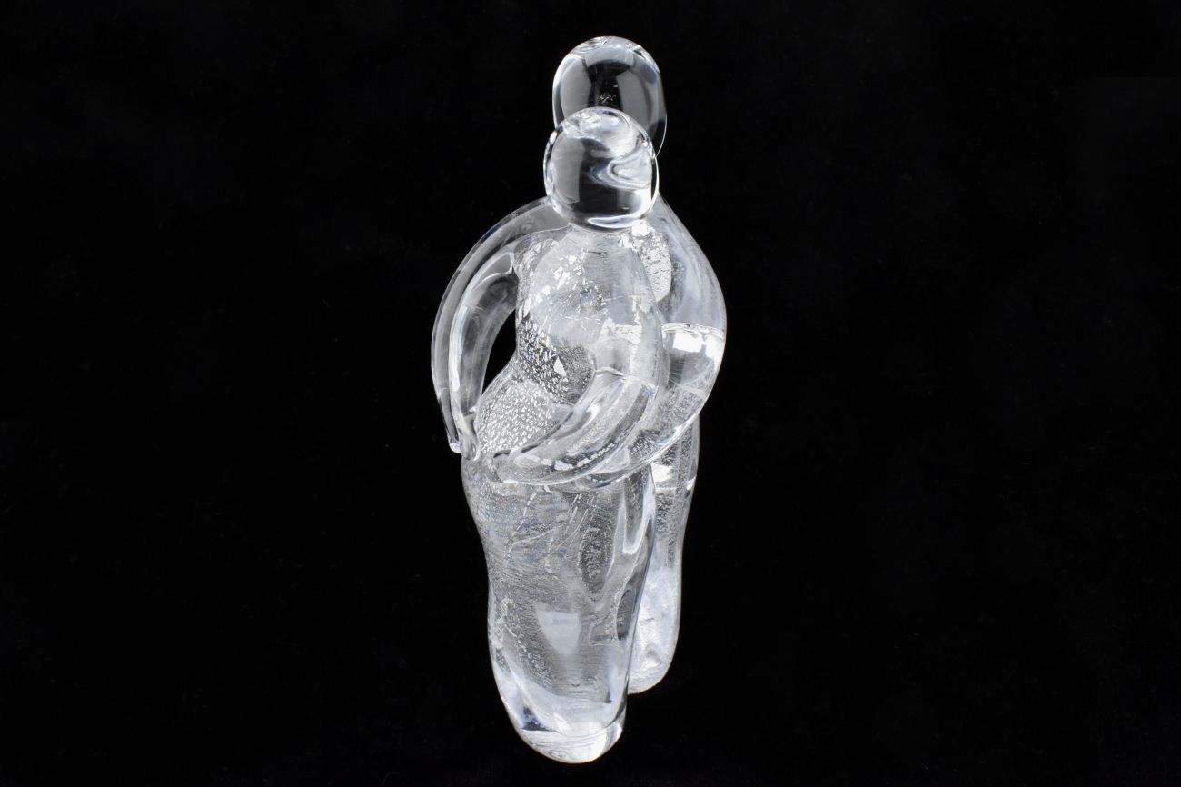 Sculpted by Paul from clear molten glass with encased silver leaf.