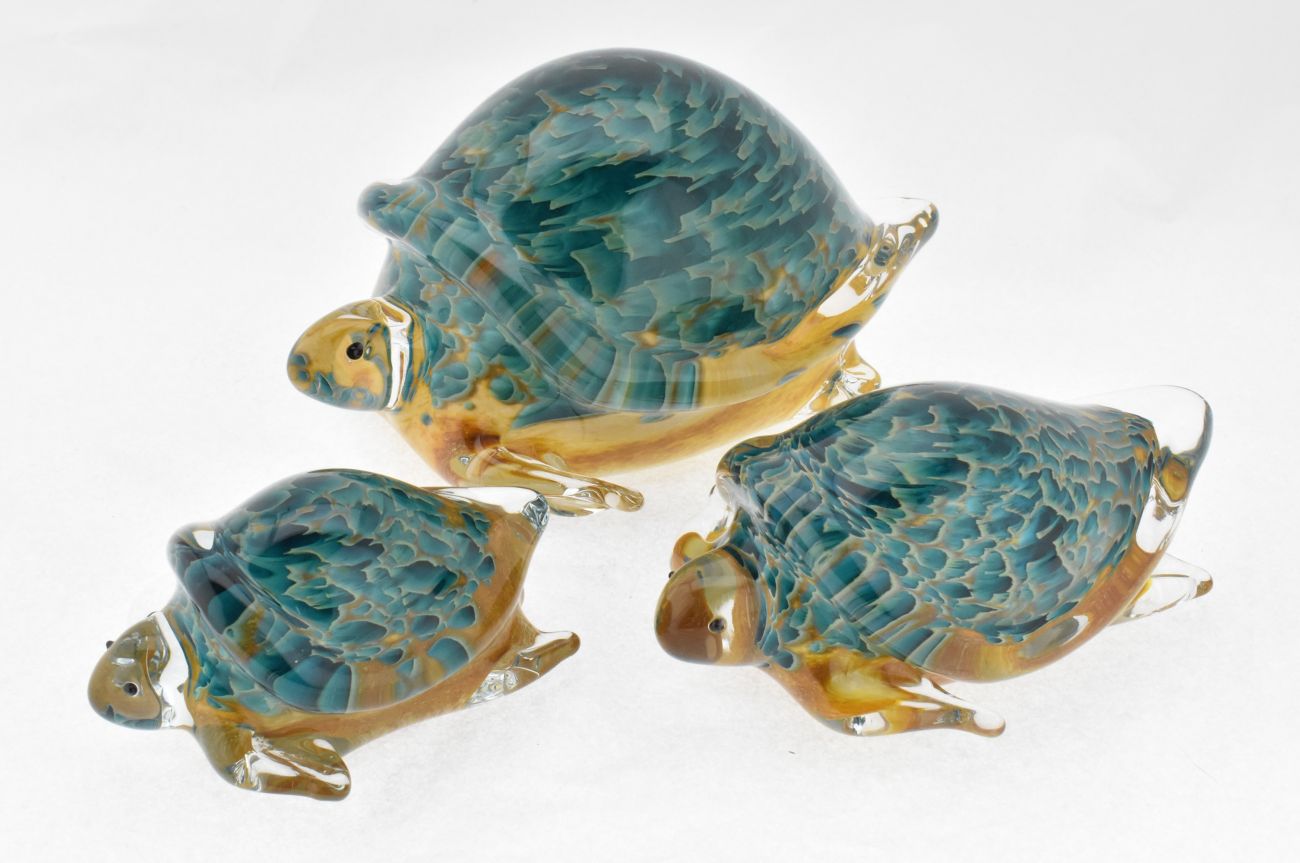 Hand sculpted by Paul, this studio art glass sea turtle has great depth of colour. Available in a range of sizes with the largest ones blown.