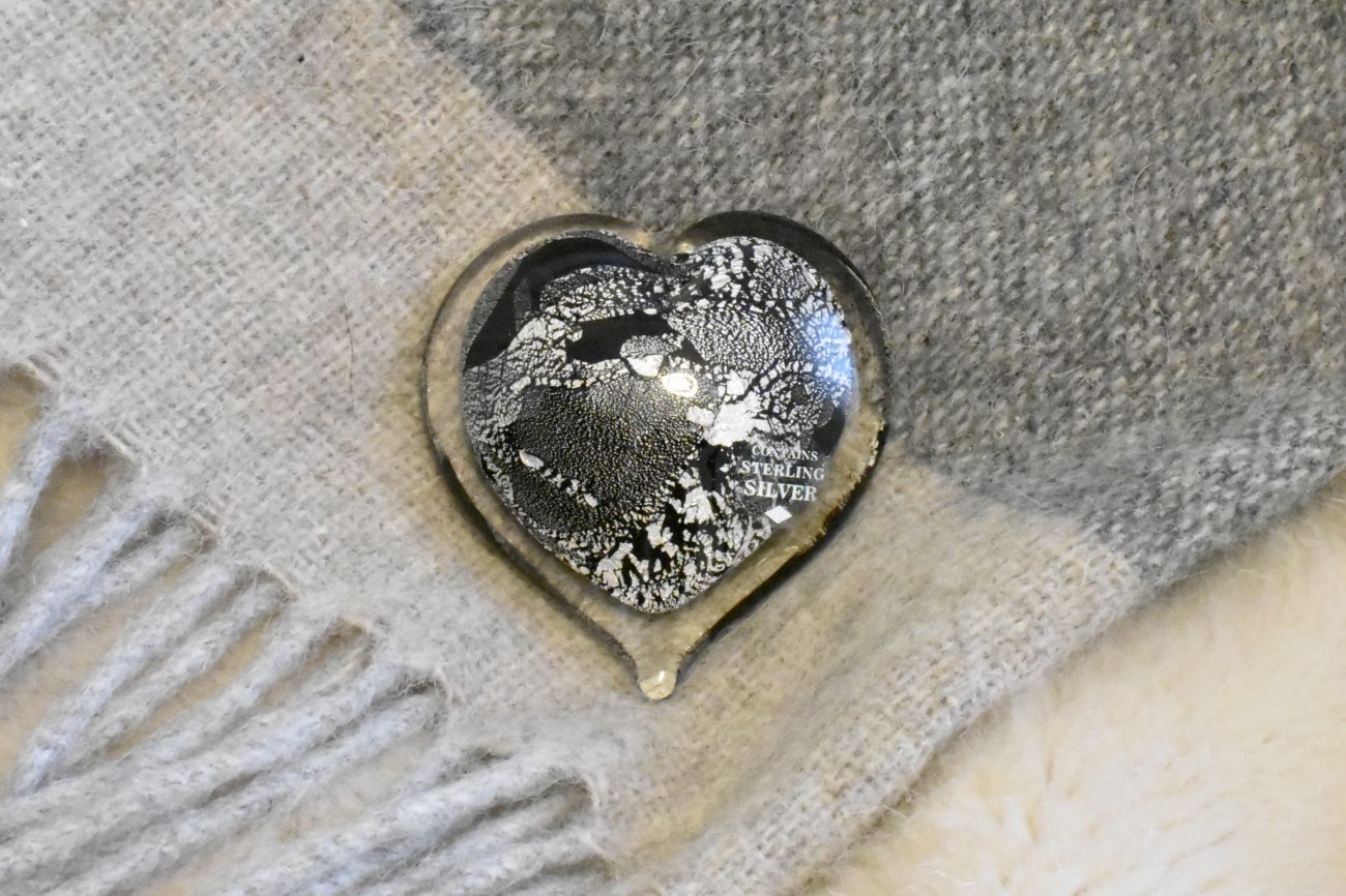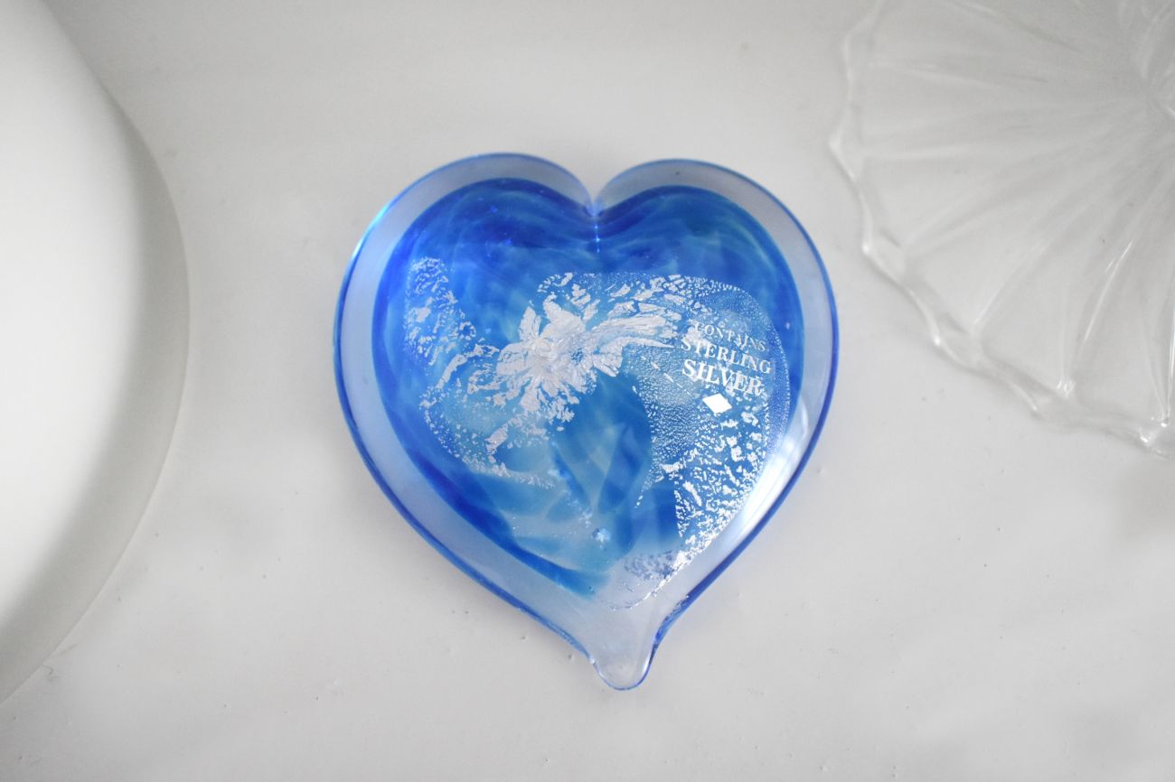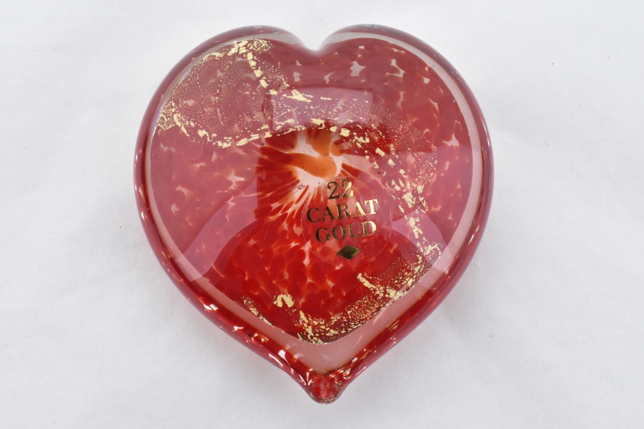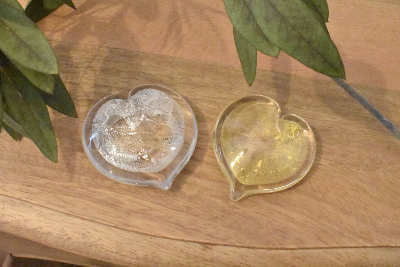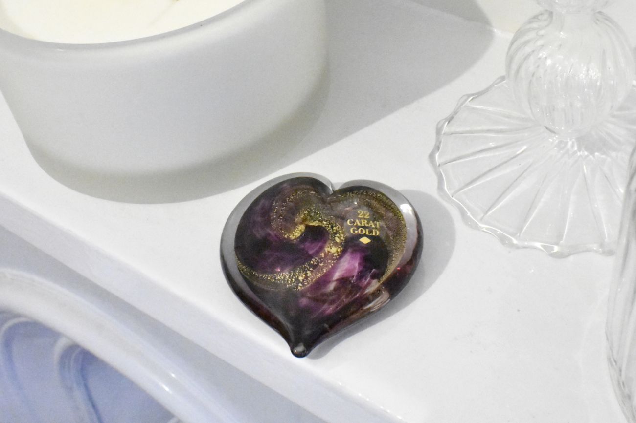Our Love Hearts have encased gold or silver leaf in the glass and are approx 6cm across.
