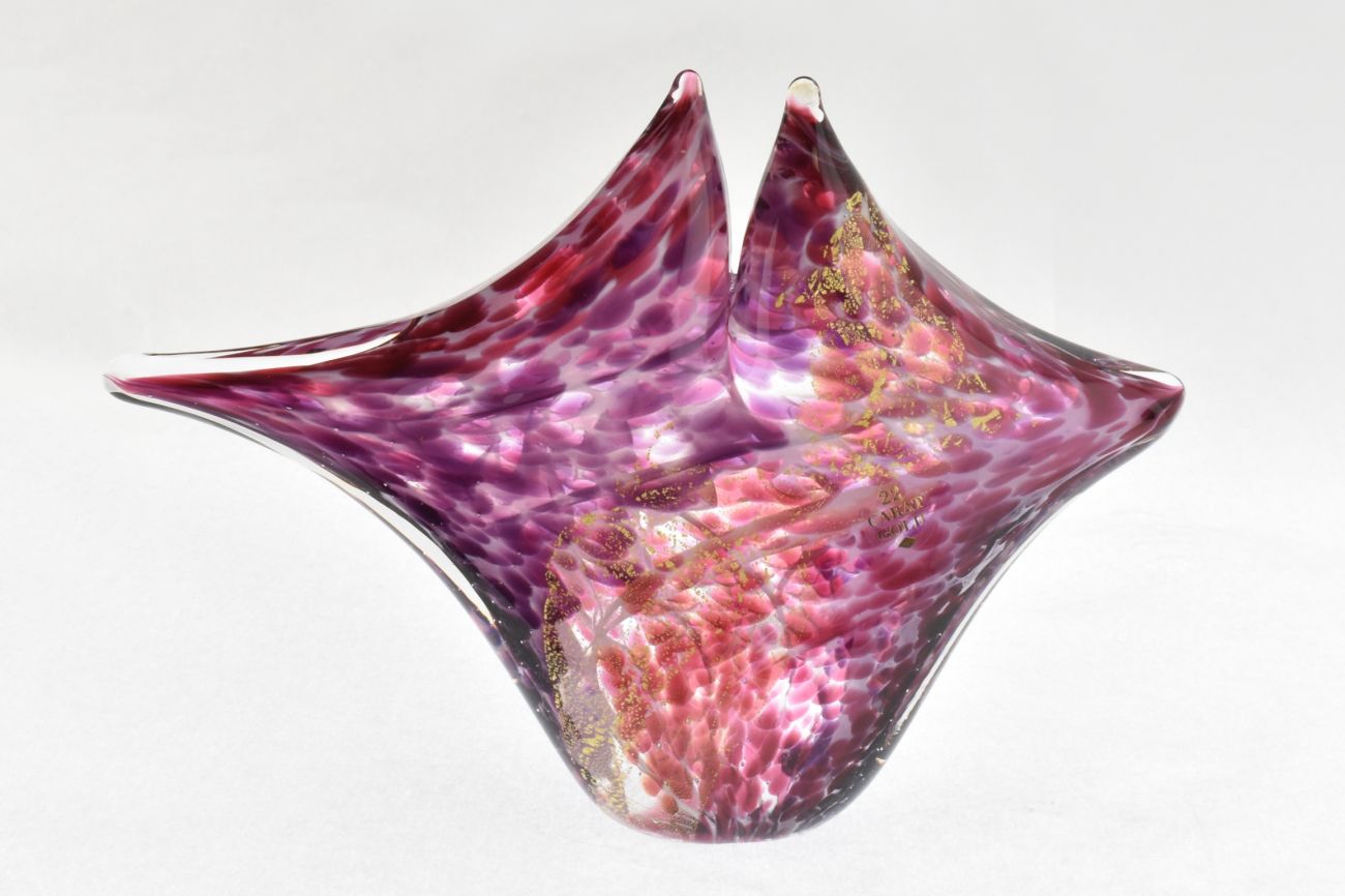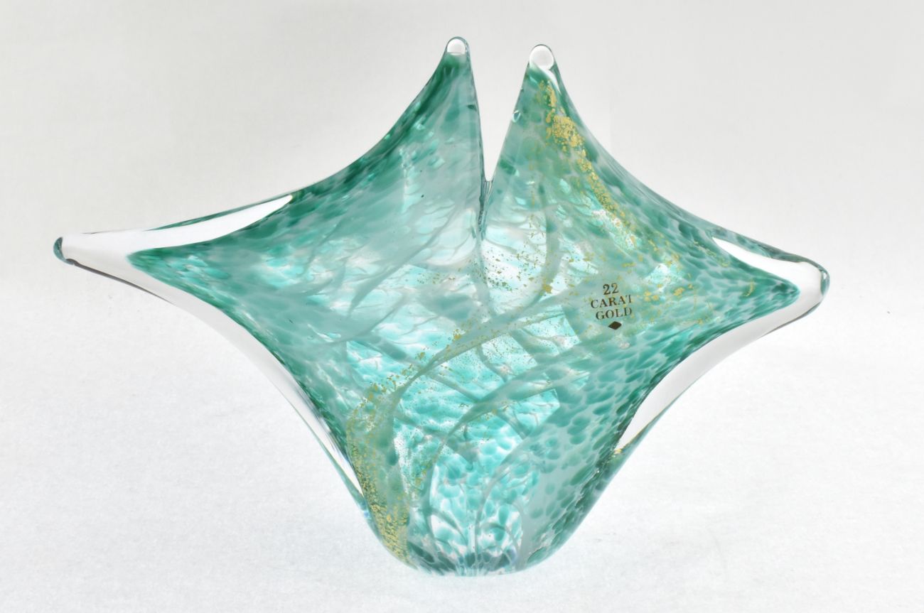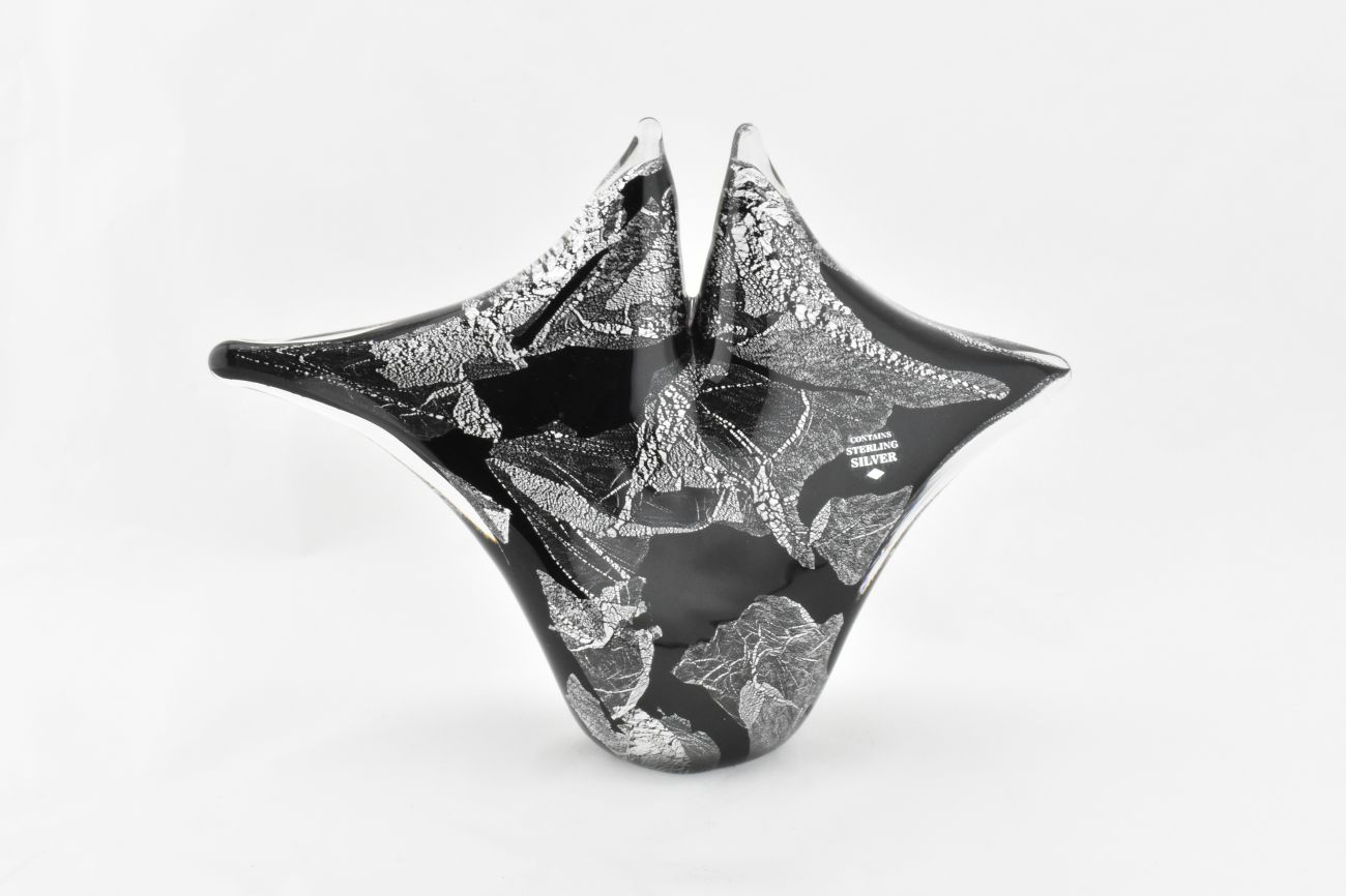 Approximately 19cm across and available in a range of colours with encased silver or gold leaf.