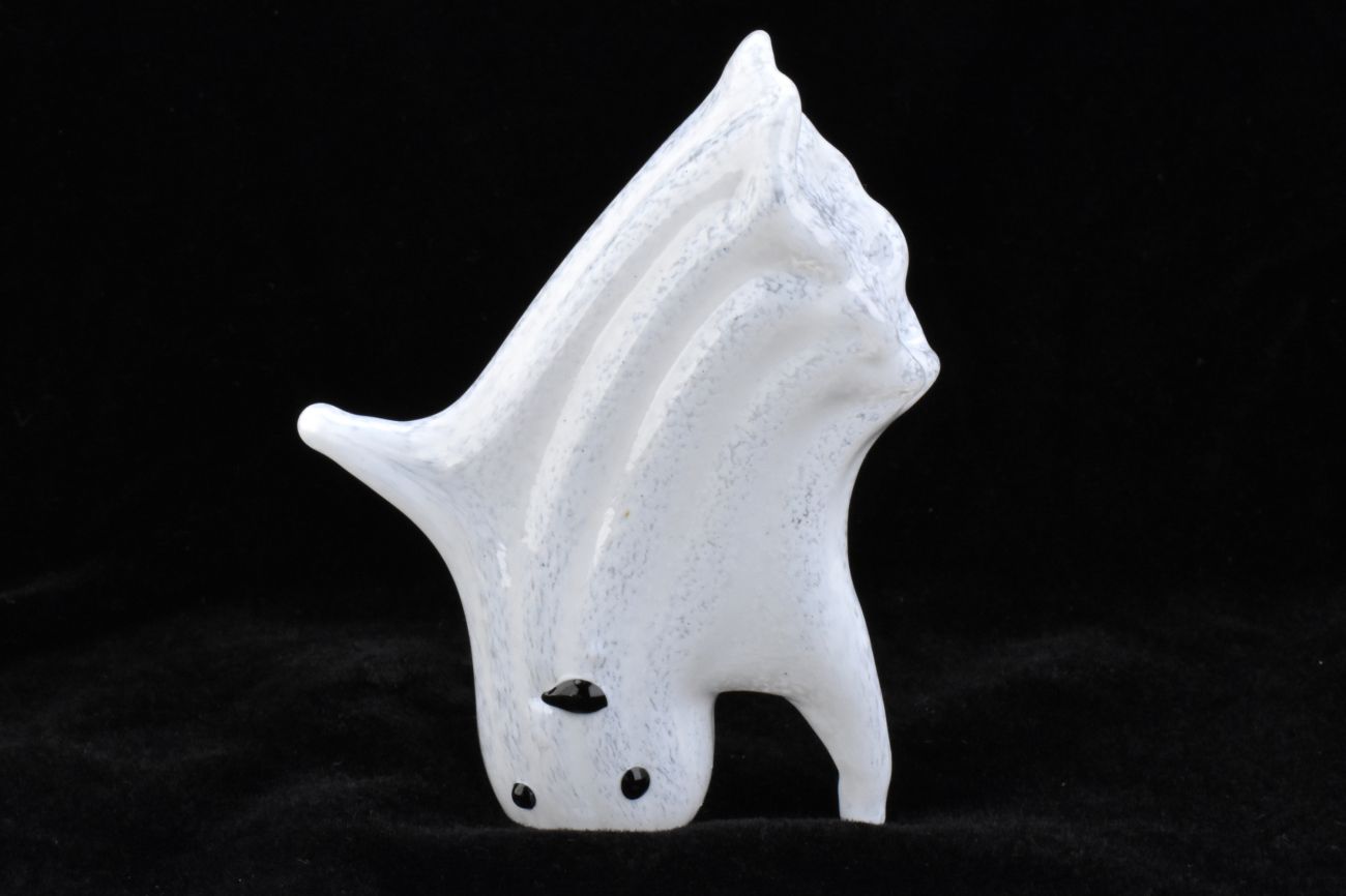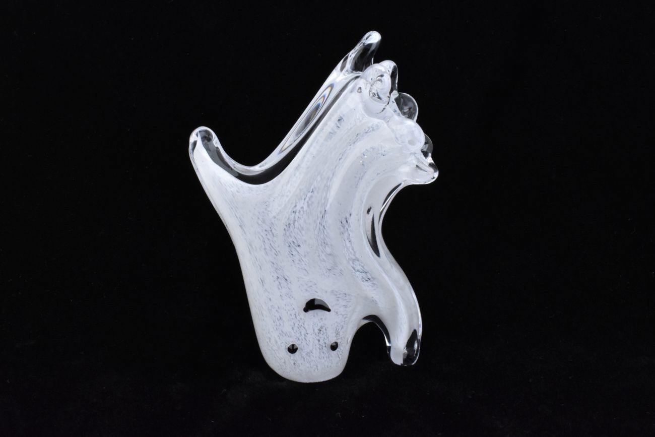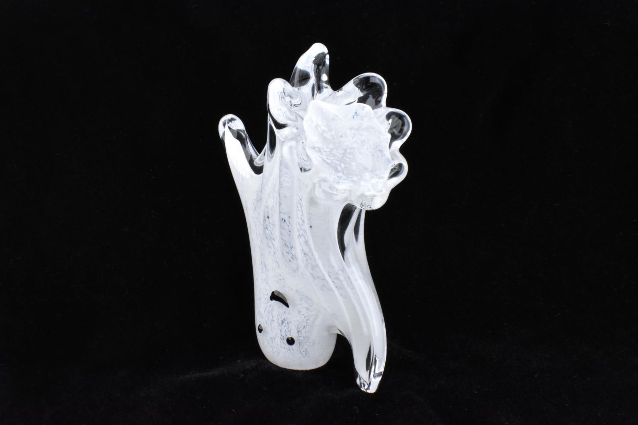 Fun Ghost doing acrobatics! Hand sculpted from molten glass and available in two sizes.