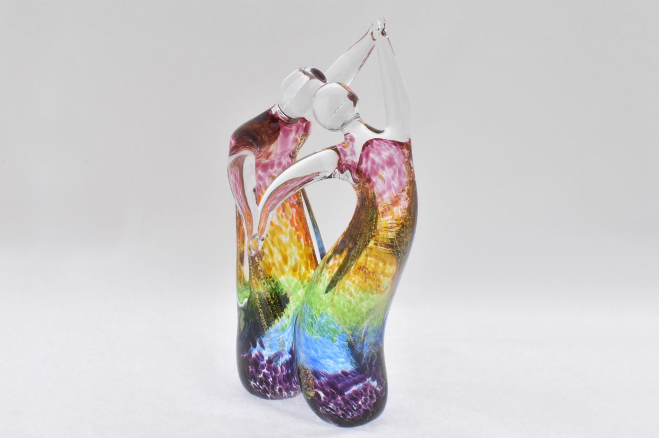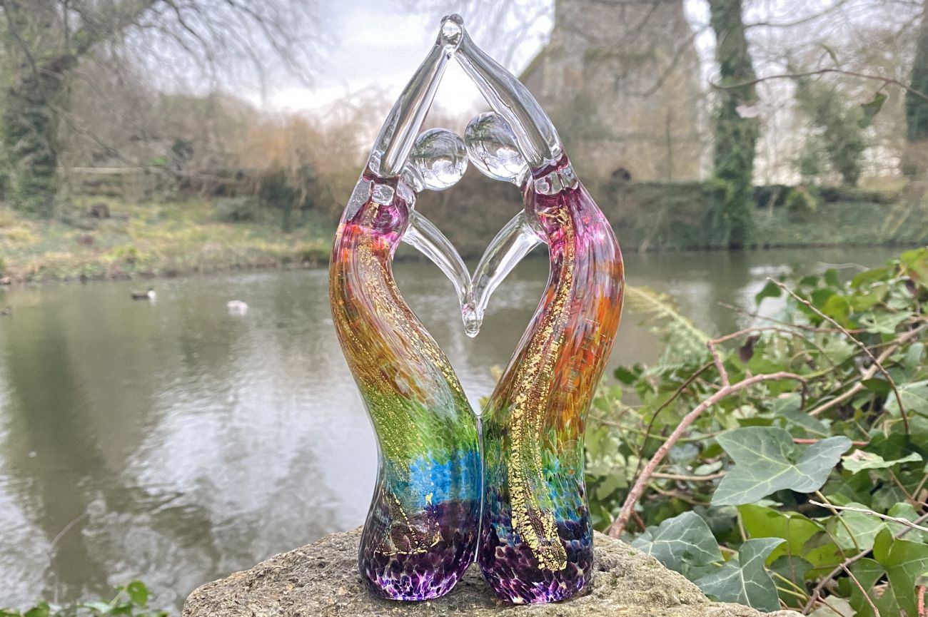 Each figure has their own rainbow colours with gold leaf encased within the glass.