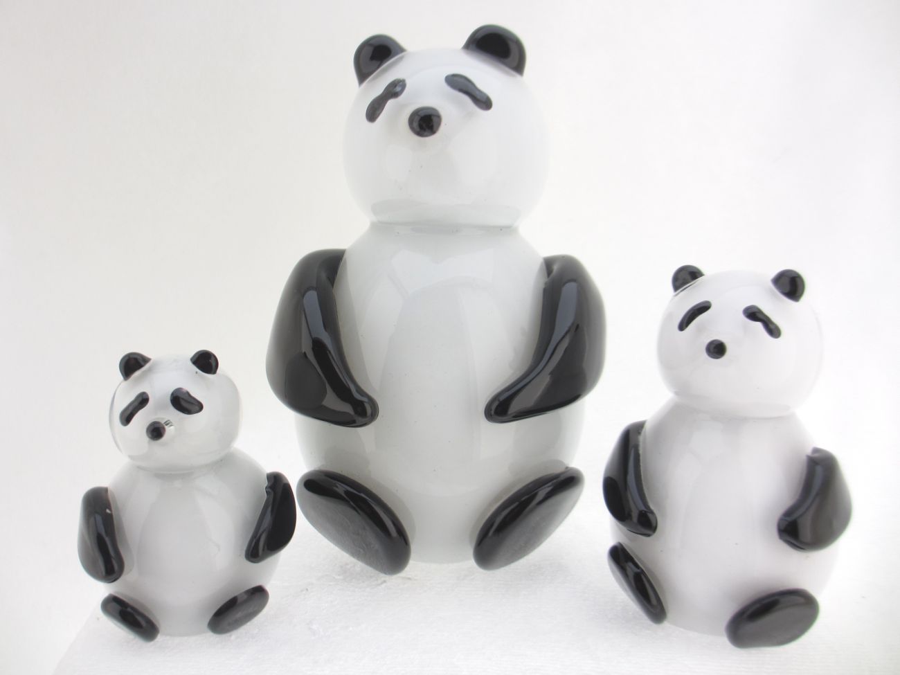 These Panda Bears are hot sculpted from molten glass by Perron. Available in Three Sizes with the largest being blown.