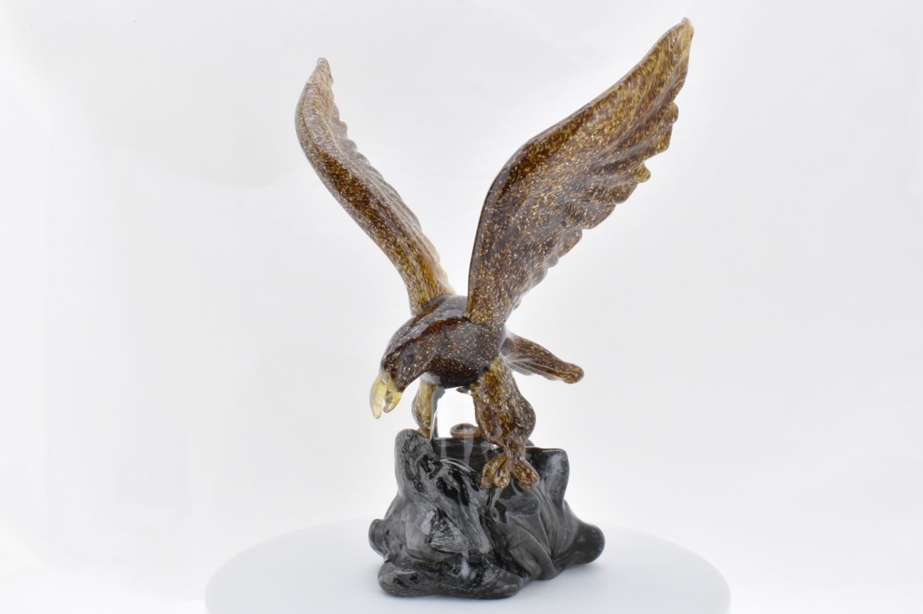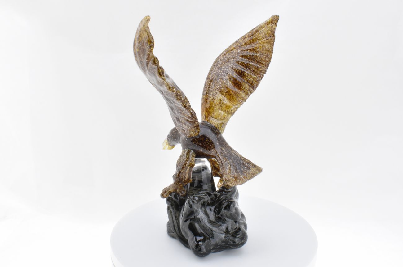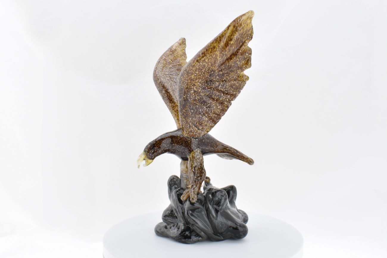 Hand sculpted by Paul, this powerful eagle stands on a grey rock. Allow 4 weeks to order.