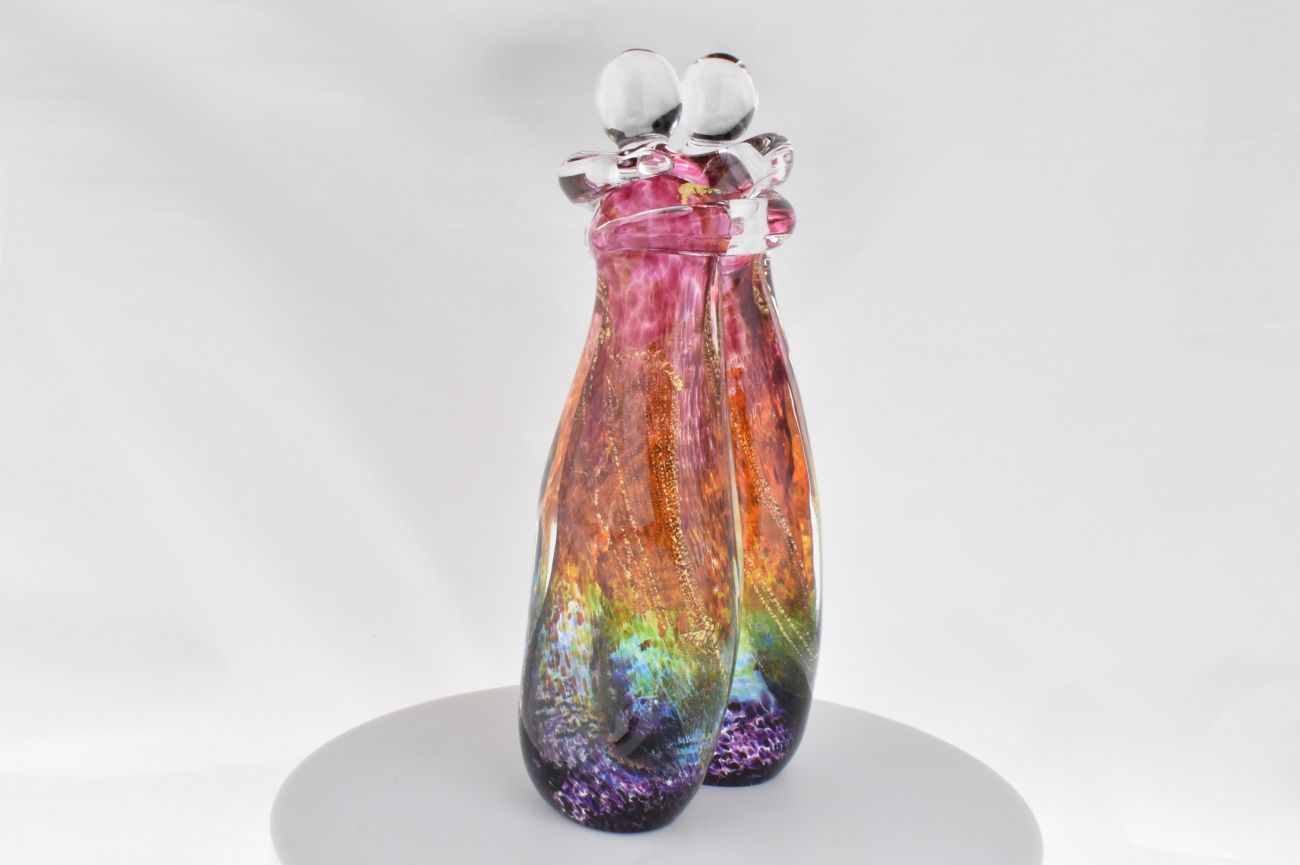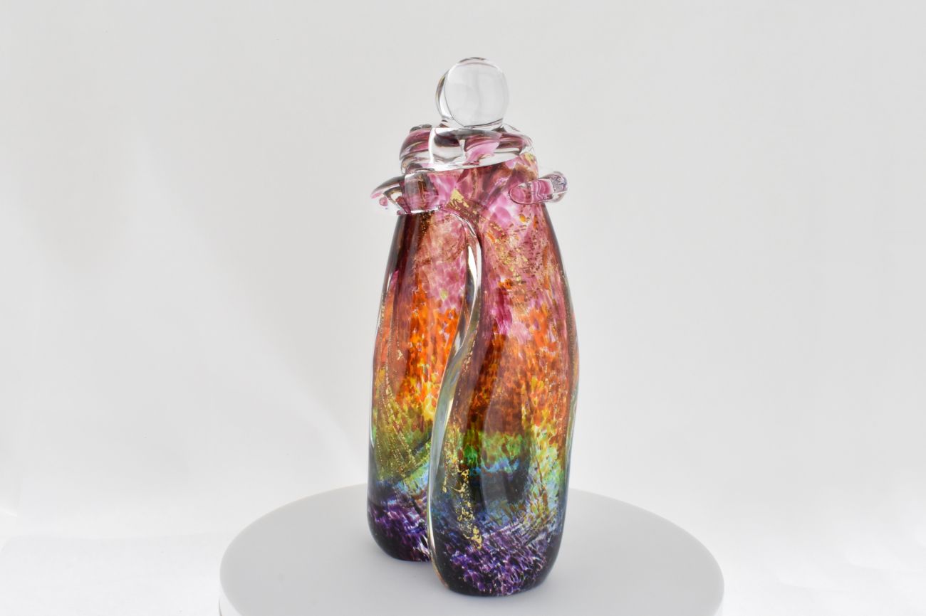 Hand sculpted with the inclusion of all the colours of the rainbow and gold leaf.