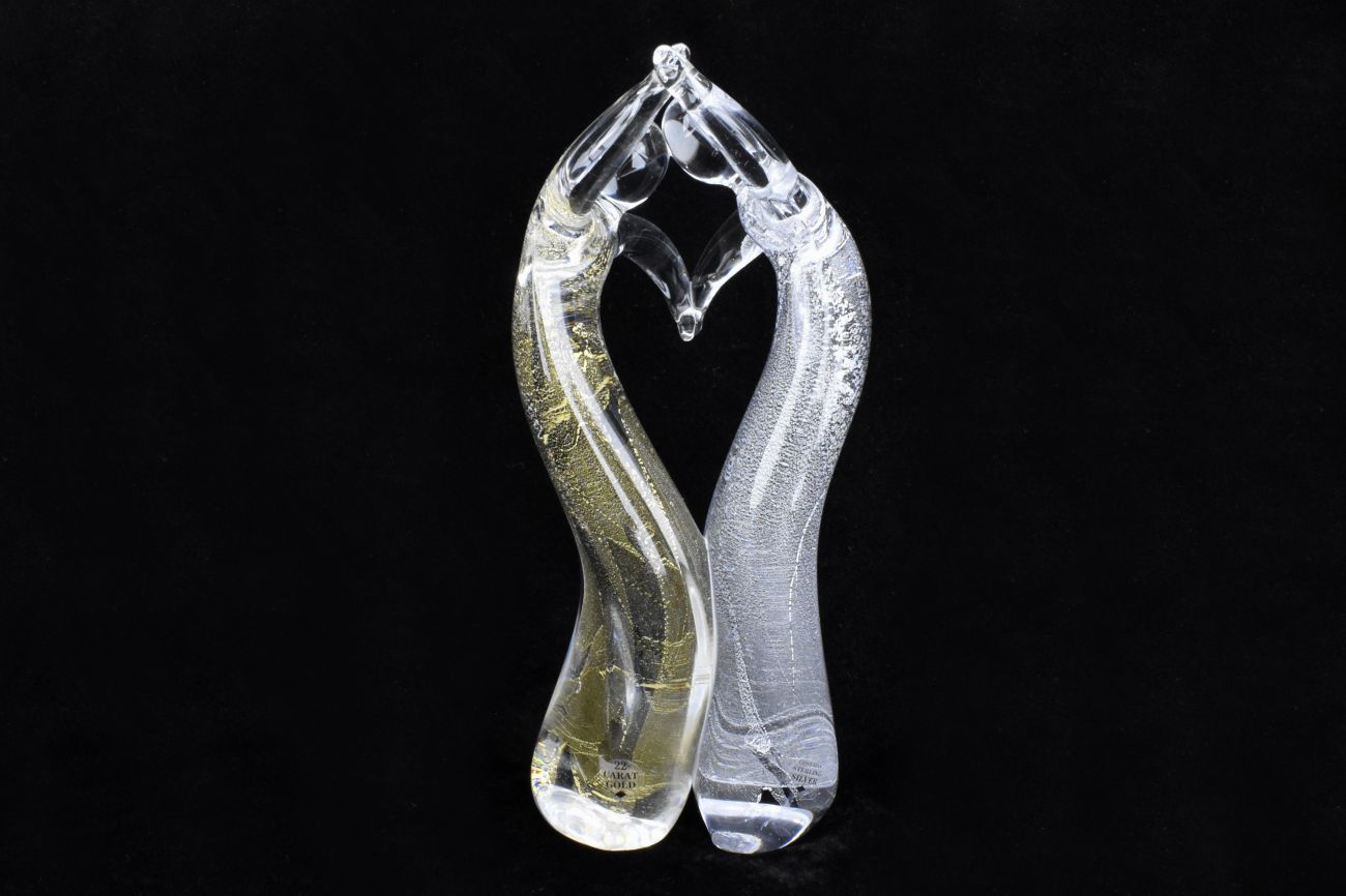 Art Glass Tall Love Heart Couple in Gold and Silver Leaf