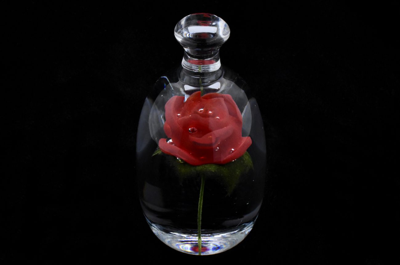 Art Glass Red Rose in a Bell Jar