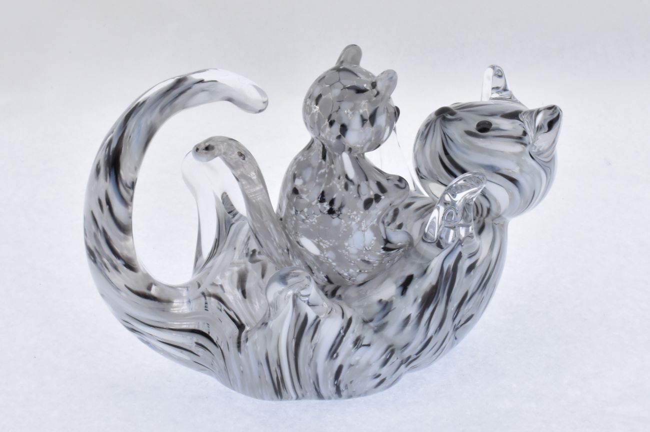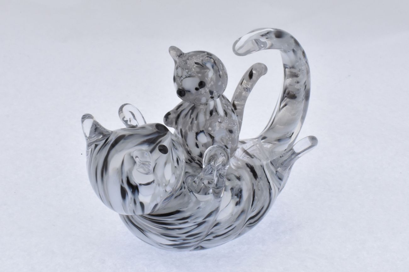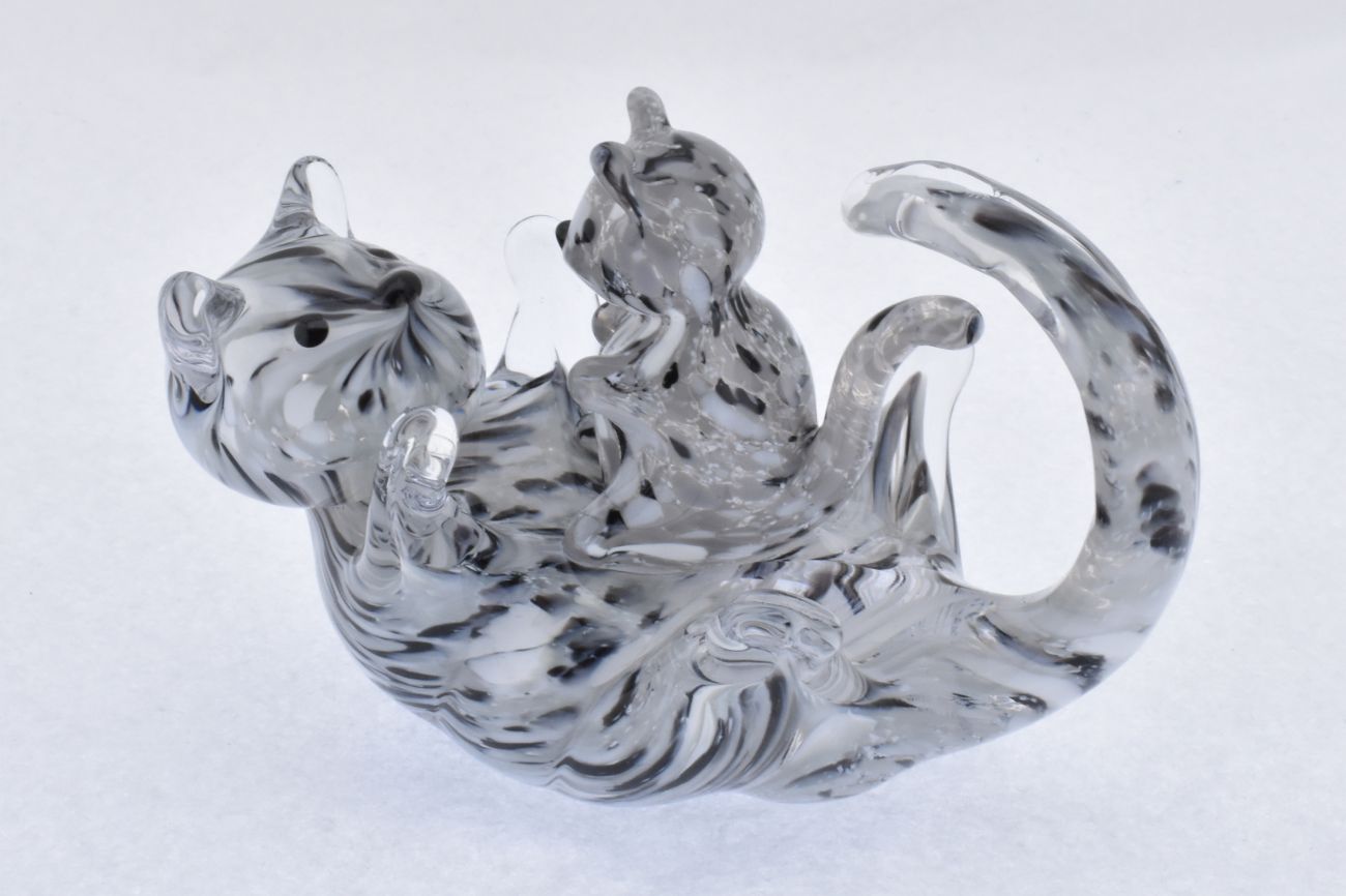 Art Glass Cat Playing with Kitten