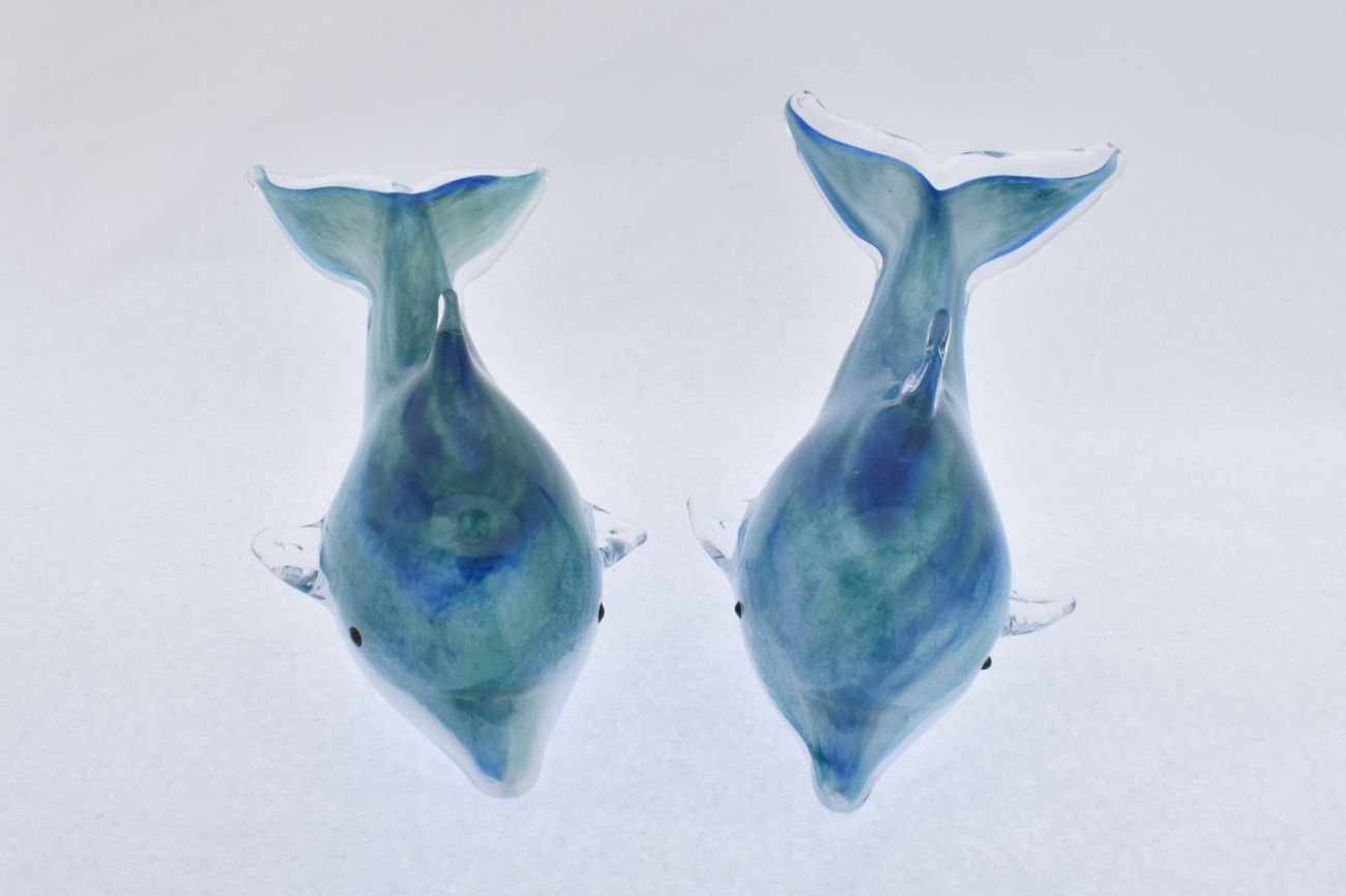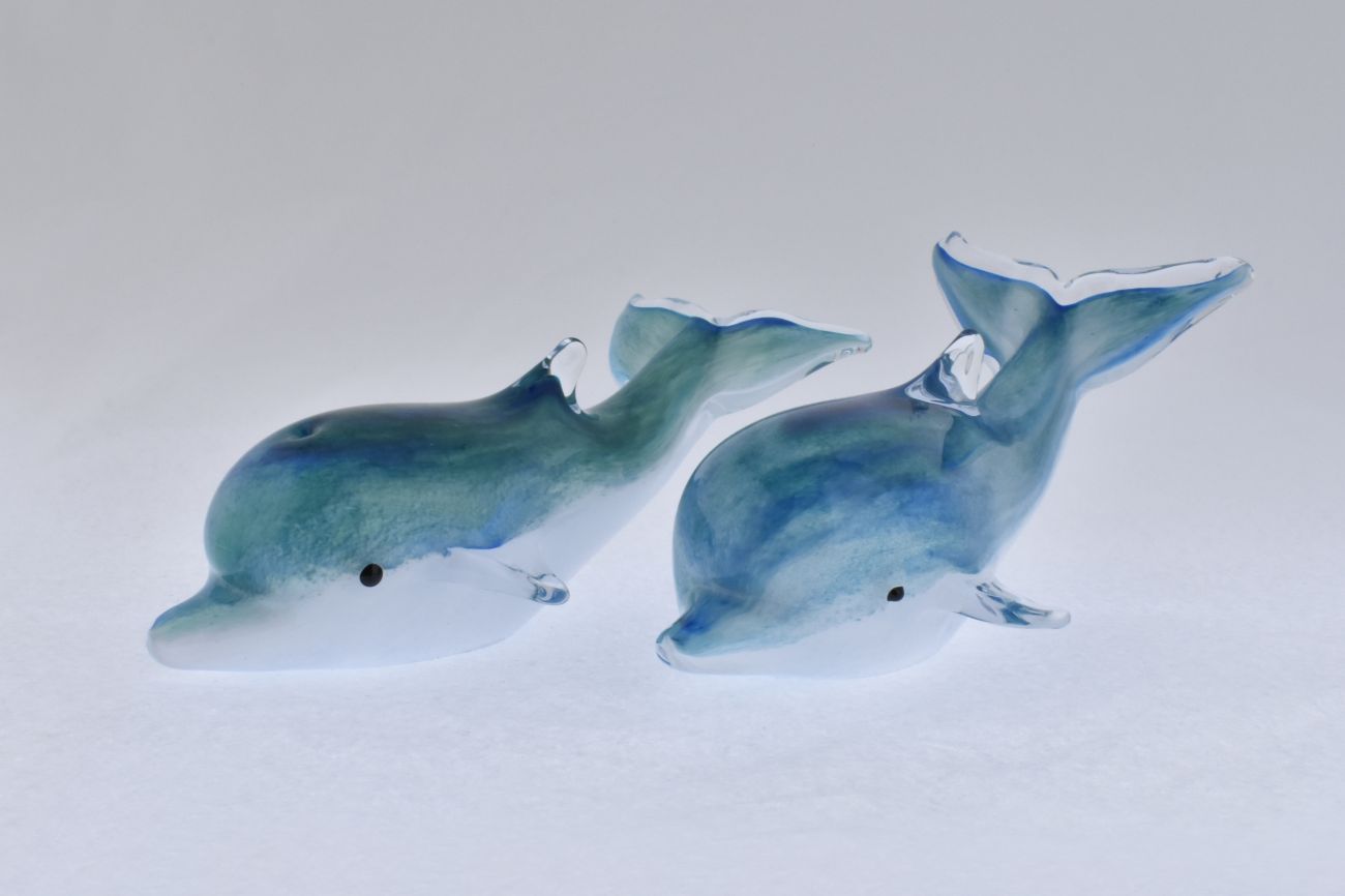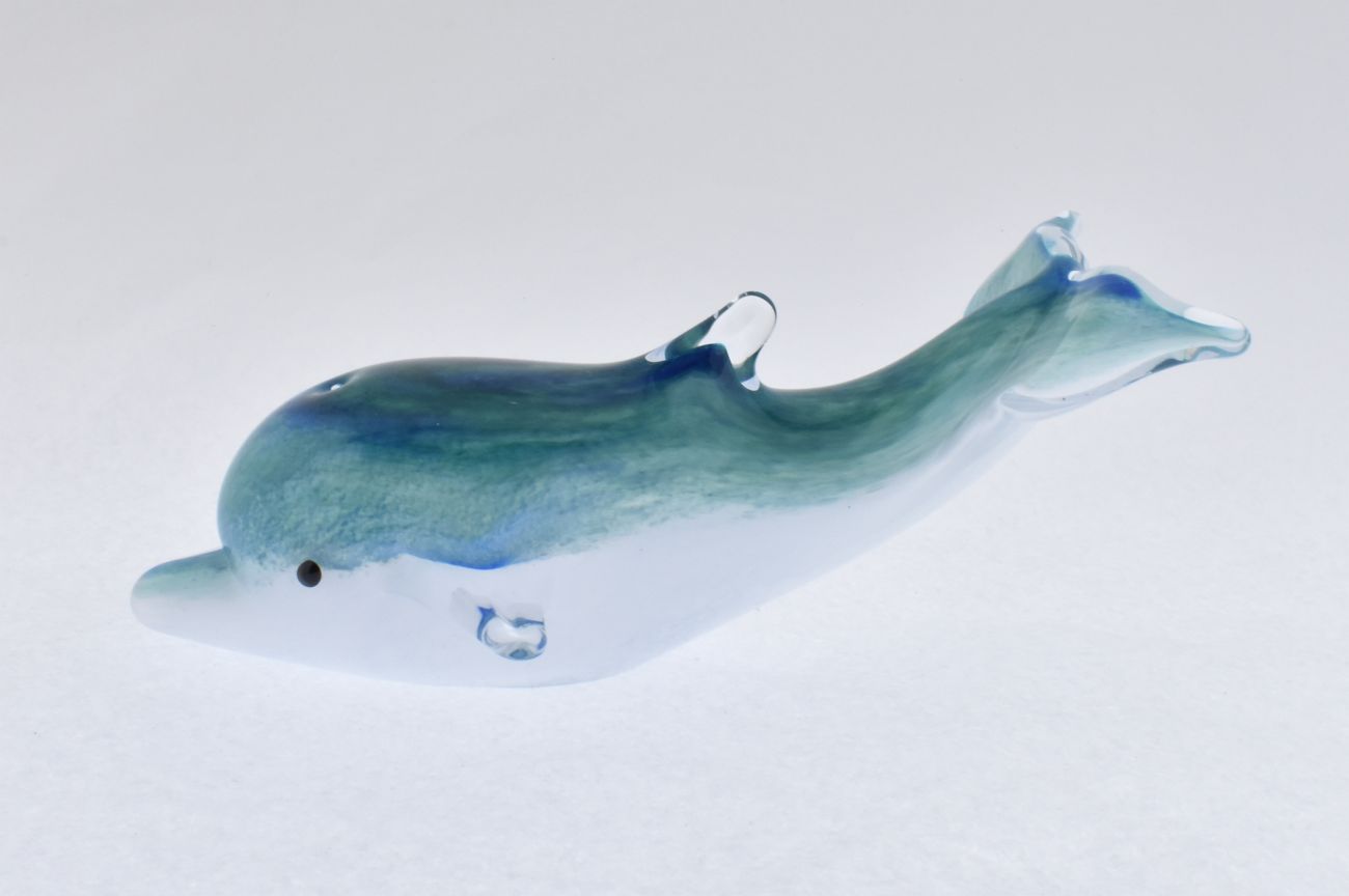 Flowing and elegant dolphin made from fluid glass. Available in dark or light ocean blues and a range of lengths.