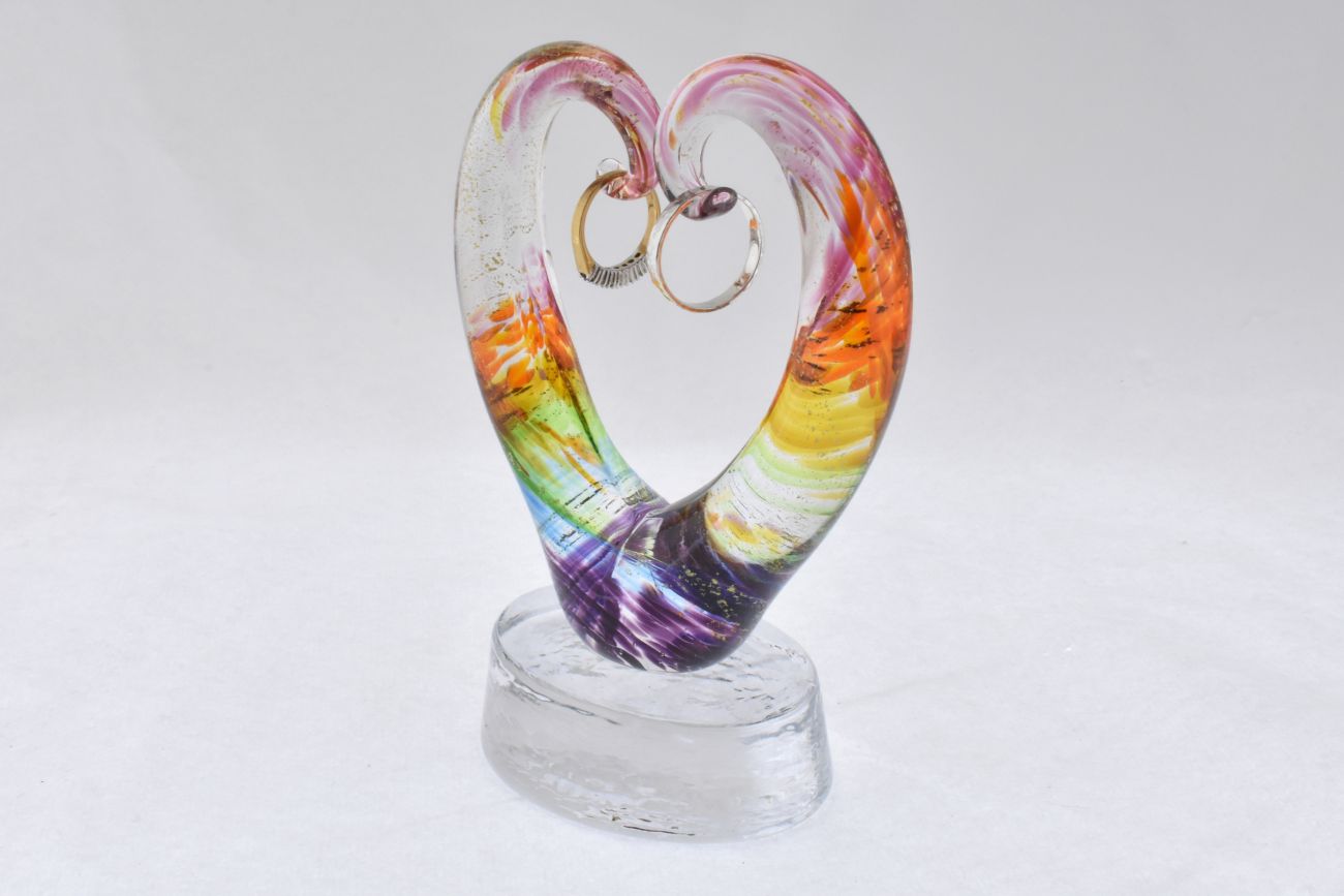 Hand sculpted by Paul with the inclusion of gold leaf alongside the rainbow colours, this heart ring holder makes a very special gift.