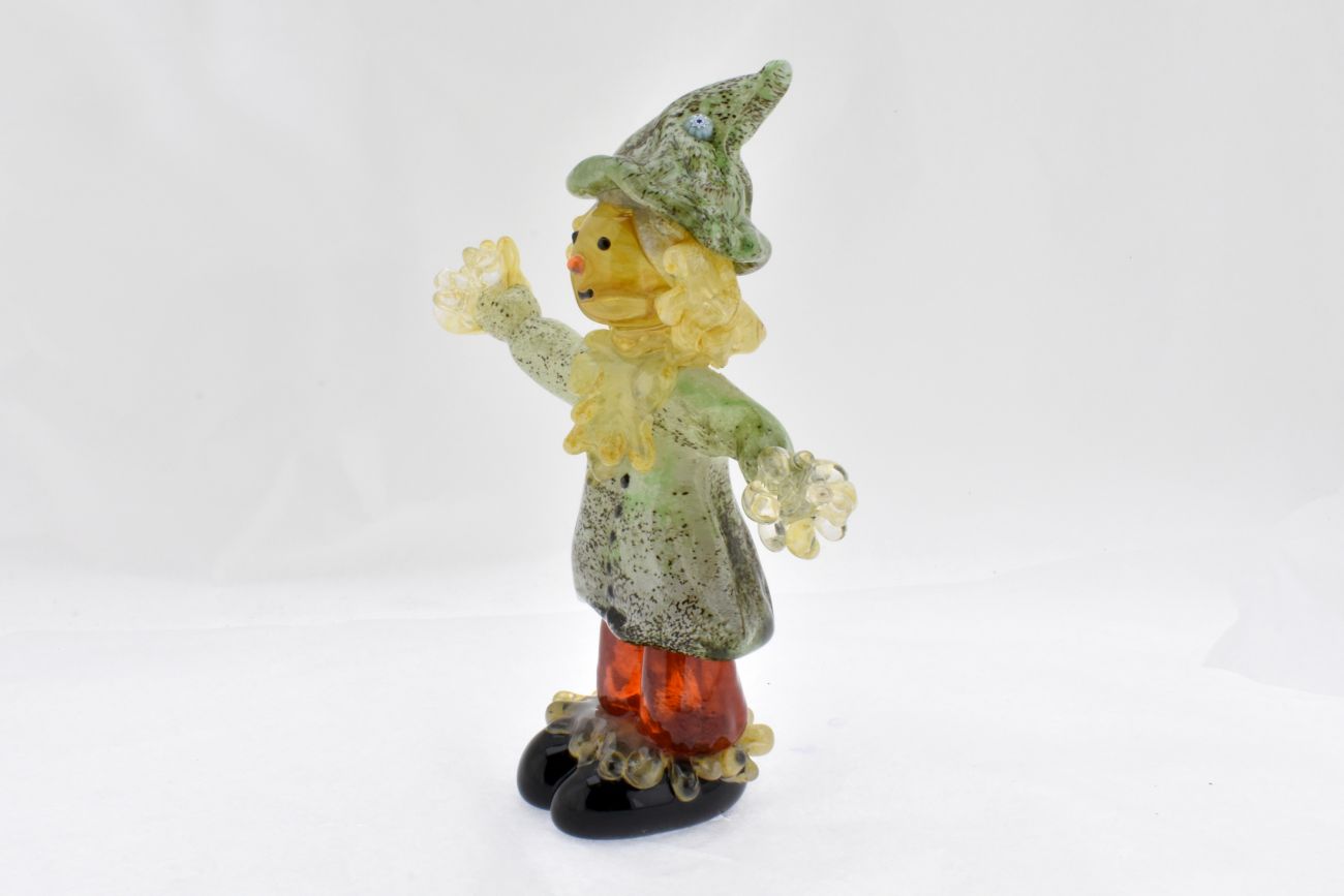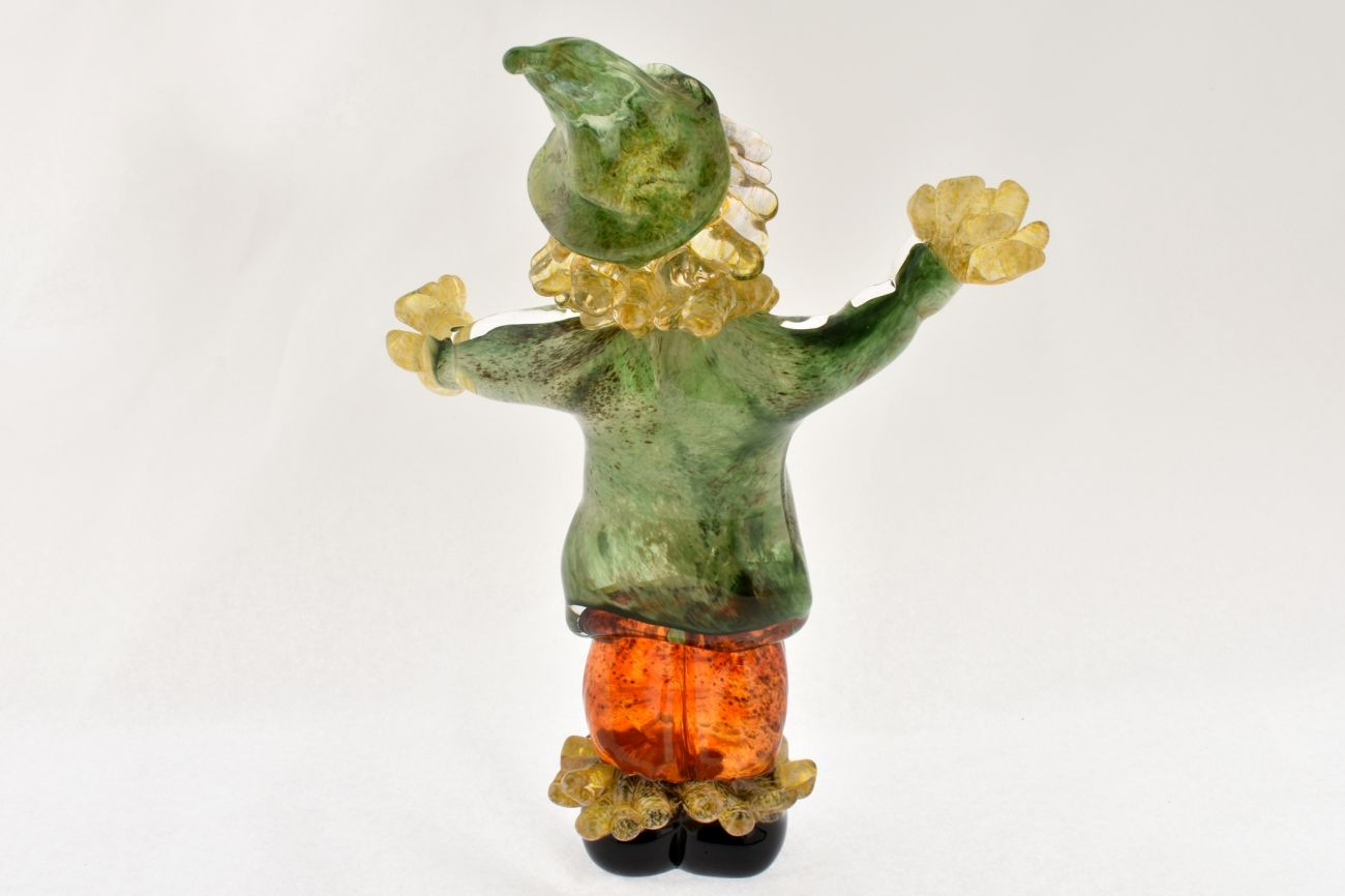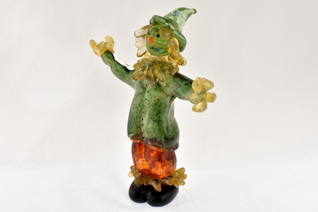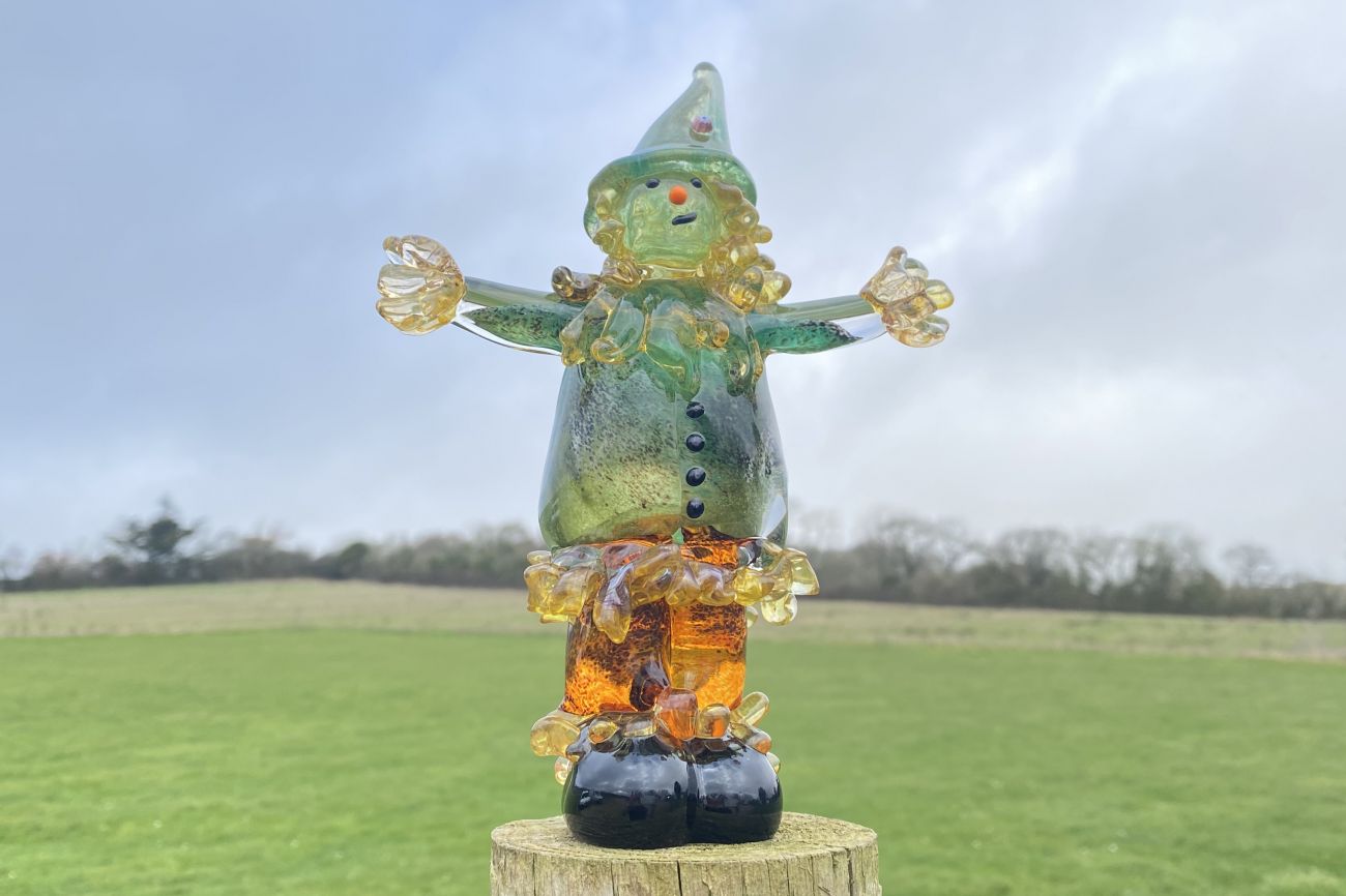 Our Scarecrow is Approx 18cm high and is hand sculpted from molten glass. A great addition to any Halloween or Farm Display.