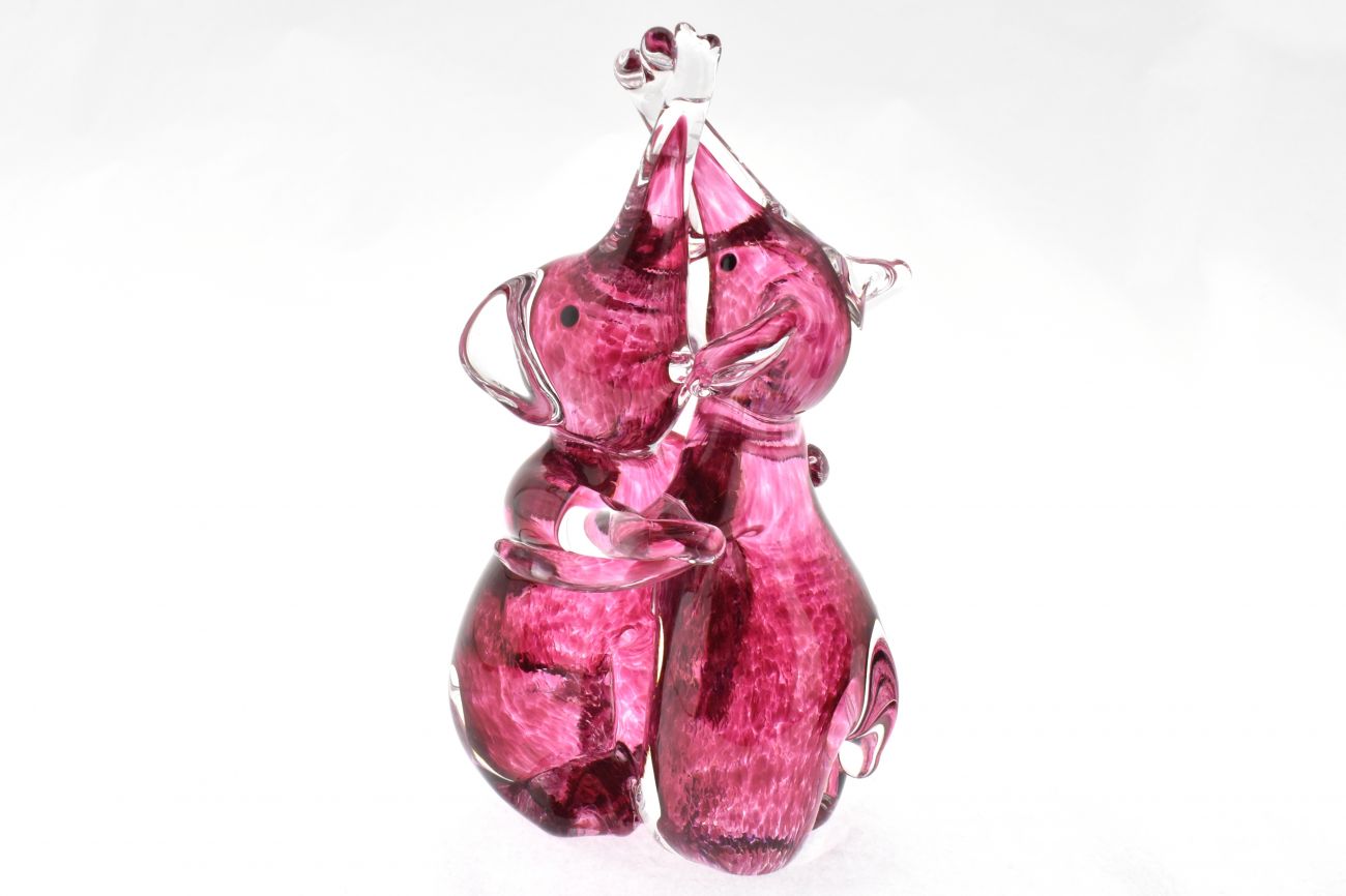 Art Glass Elephants hugging