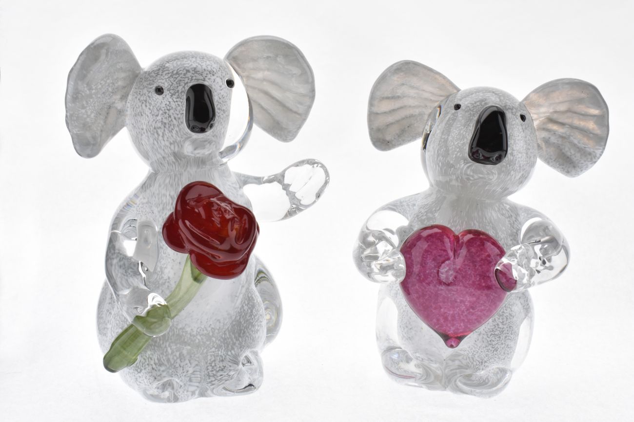 Art Glass Koala with rose or love heart