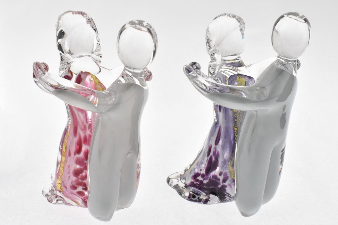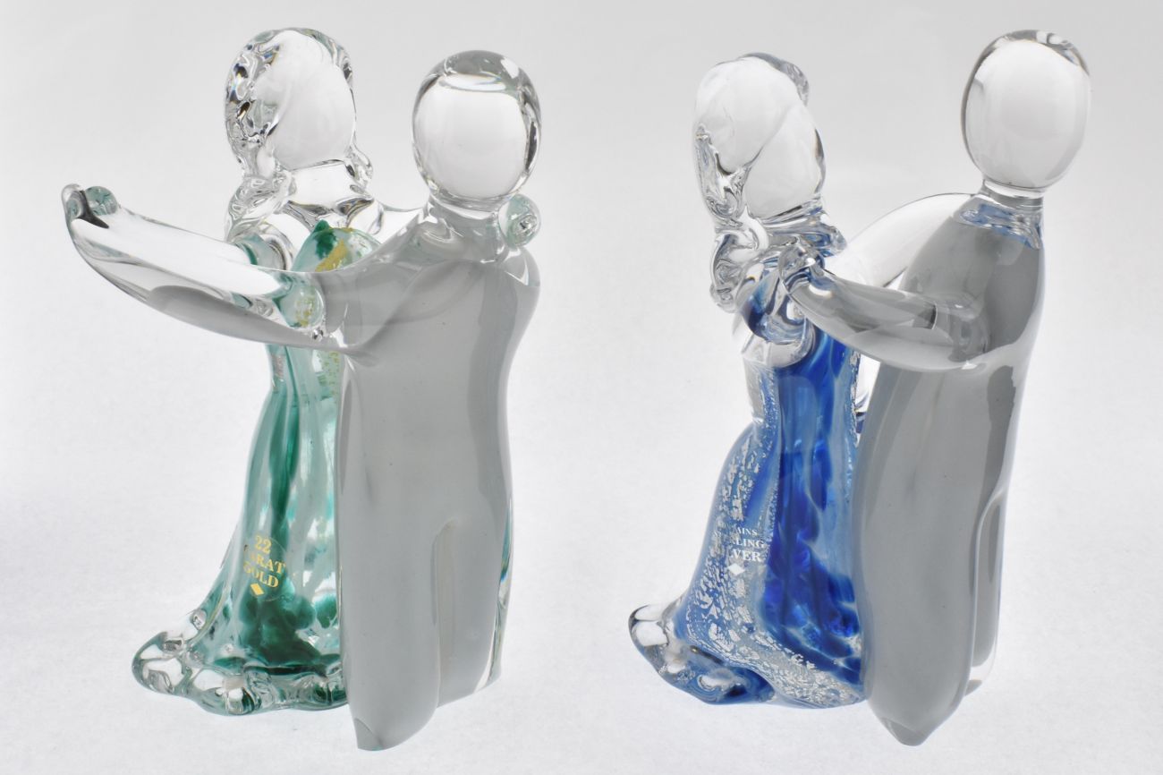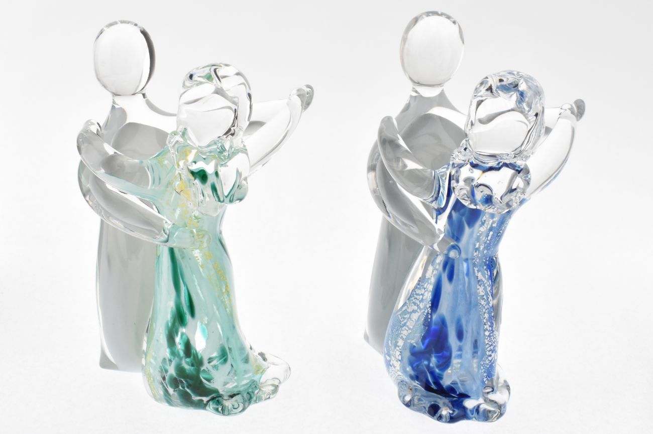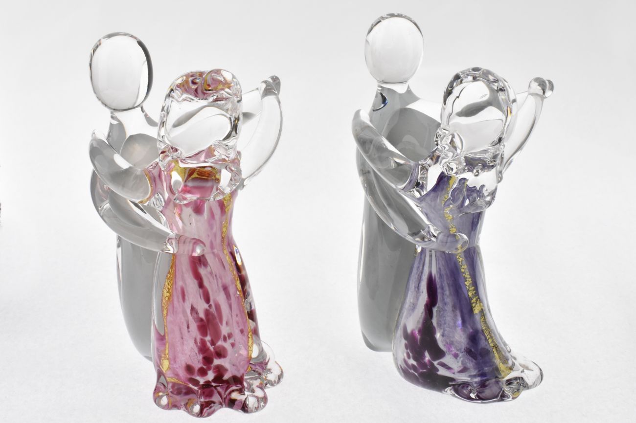 Hot sculpted from molten glass and available with the lady in a choice of colours.